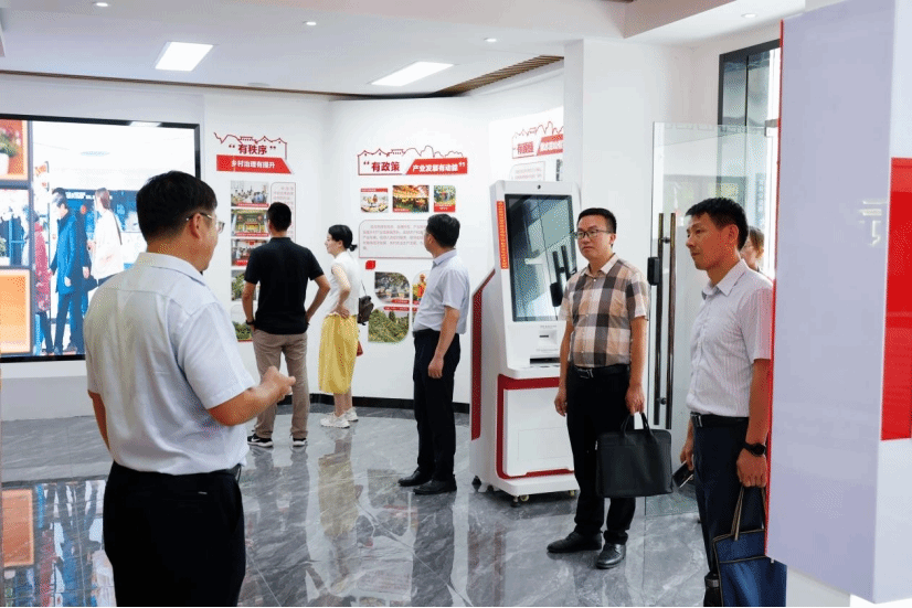 下午4点,张师帅、吴青山一行来到大茂社区,全国人大代表、深渡镇大茂社区党总支书记、社区主任姚顺武在深渡镇山水画廊展厅介绍了生态保护与乡村振兴的基本情况。两个展厅呈现了深渡镇的人文风光、特色产业和新安江沿线的特色旅游航线等,以及在新安江生态流域补偿机制实施以来,深渡镇由“党建红”带动“生态绿”的丰硕成果。