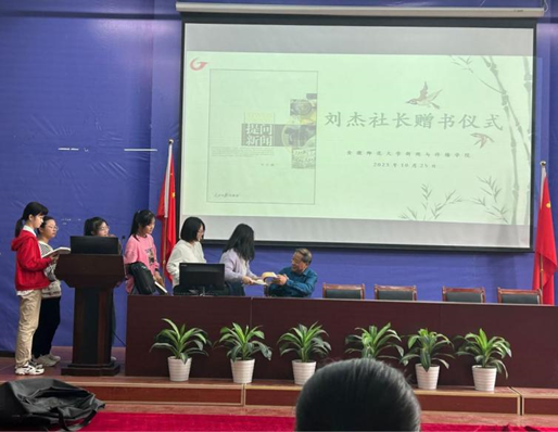 讲座开始前,刘杰教授热情地将其著作《提问新闻》赠予现场同学,并现场为著作进行签名。会场内座无虚席,气氛热烈。