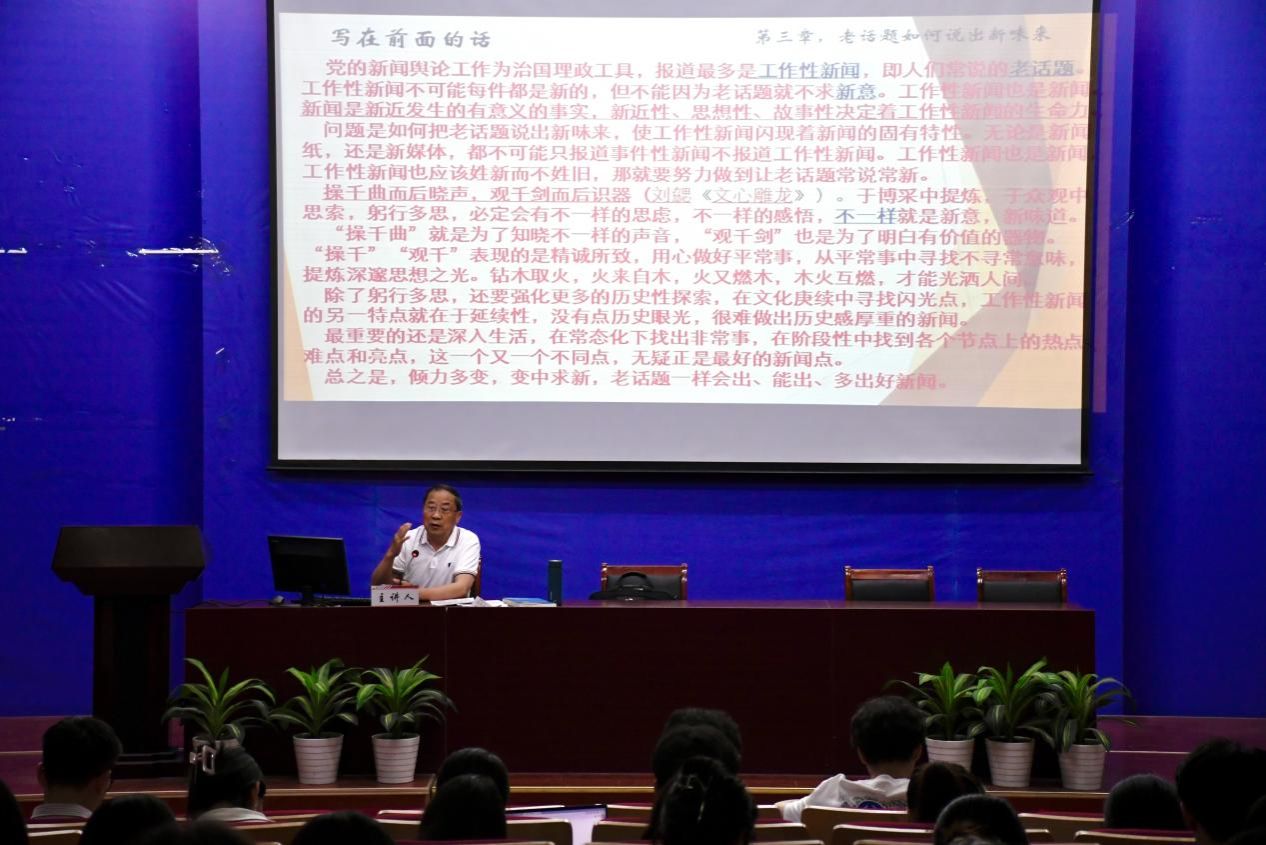 老话题怎么说出新意来,其中蕴藏着怎么样的学问?刘杰深入分析了“皖江话题”大放异彩的原因,指出新闻写作要谋深谋细,谋势落子,要将目光放得长远,树立全局观,要有历史纵深度,做到篇篇不同,写足新味,让新闻更具鲜活性。刘杰强调新闻要有“坚硬”的内核,他带领同学们分析了党报要抓什么样的新闻,以及怎么样去抓新闻写新闻。同时,他指出要学会在“硬新闻”中寻找“软新闻”,在导向性上增强可读性,寻求坚硬的内核,讲求鲜活的形式,让老话题有新味道,成就重磅稿件。