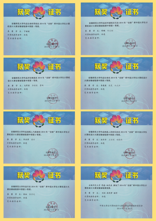 中国大学生计算机设计大赛主办单位为教育部高等学校计算机科学与技术等四个教学指导委员会。本次省级大赛由安徽省教育厅高教处组织,目的是为了激励我省大学生学习计算机应用知识和技能的兴趣,提升大学生参加全国大学生计算机设计大赛的水平。本次竞赛成绩的取得,是我院切实推进“新文化、新传媒、新教育”动漫人才培养新模式改革和实践教学的成果,也是对我院办学形象的一次集中展示。(动画系)