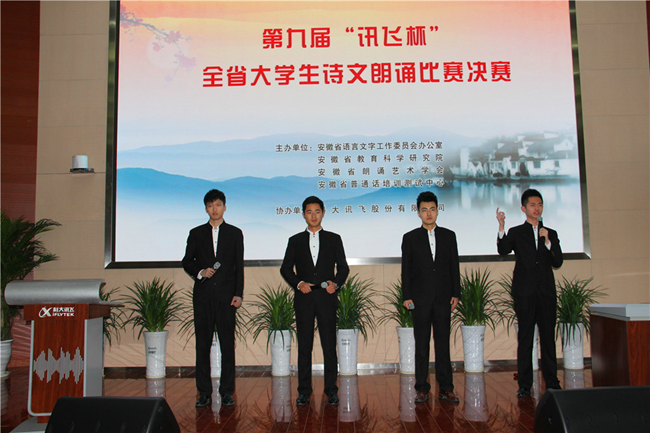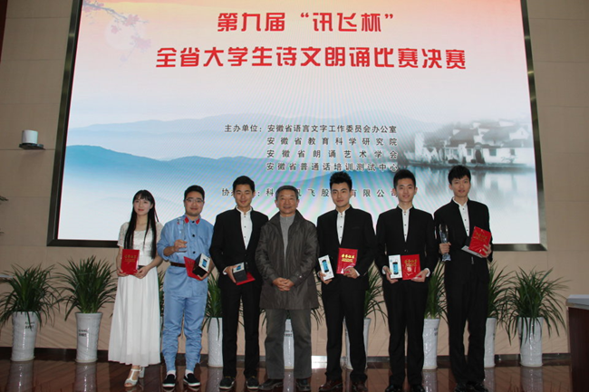 近日,由安徽省语言文字工作委员会办公室、安徽省教育科学研究院、安徽省朗诵艺术学会、安徽省普通话培训测试中心主办,科大讯飞股份有限公司协办的第九届“讯飞杯”全省大学生诗文朗诵比赛决赛在省城合肥落下帷幕。来自传媒学院播音与主持艺术专业的何岸图、刘震宇、陈杨子、聂子贺、陈剑雄、肖楚颜同学不负众望,包揽了仅有的两个特等奖。