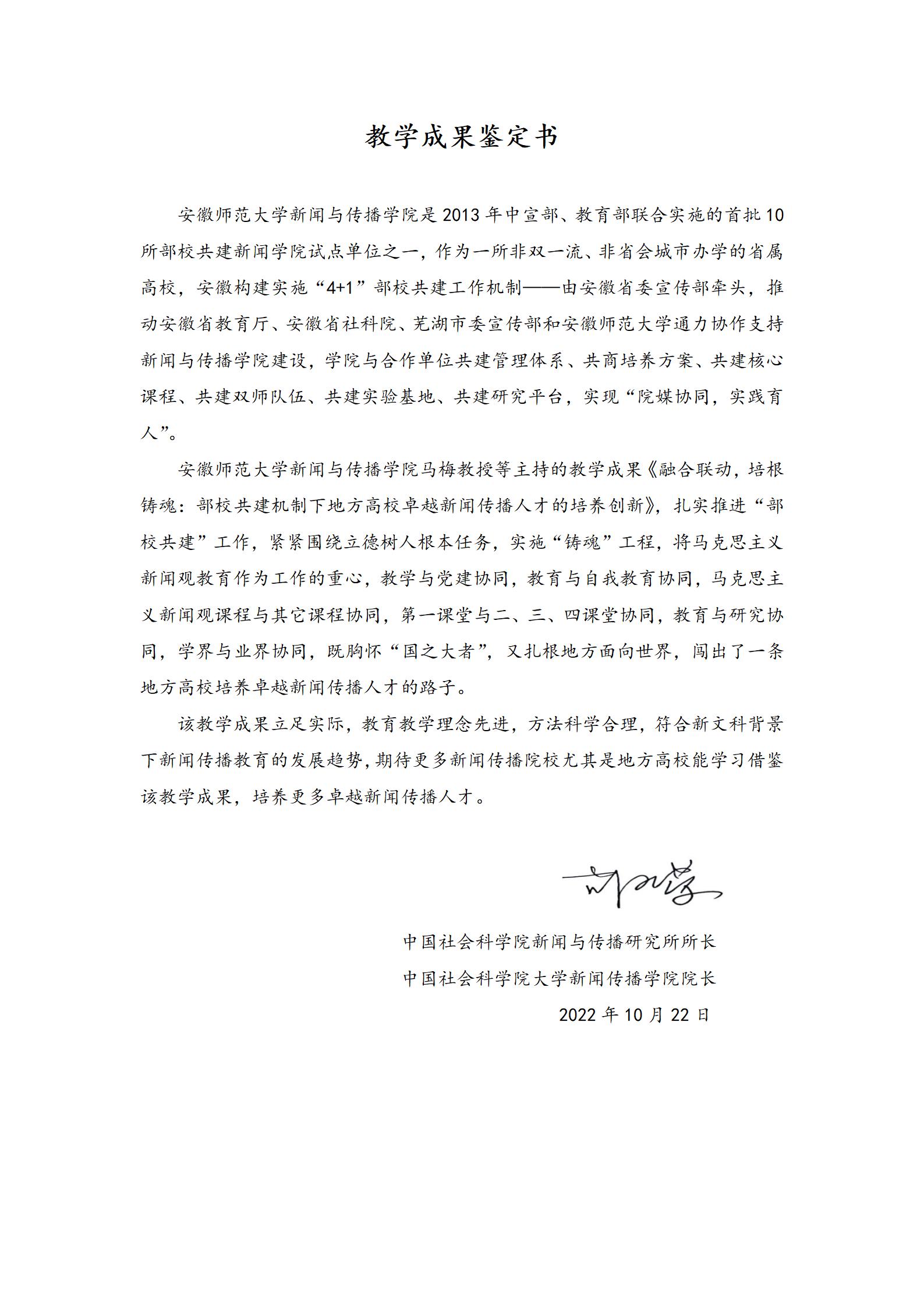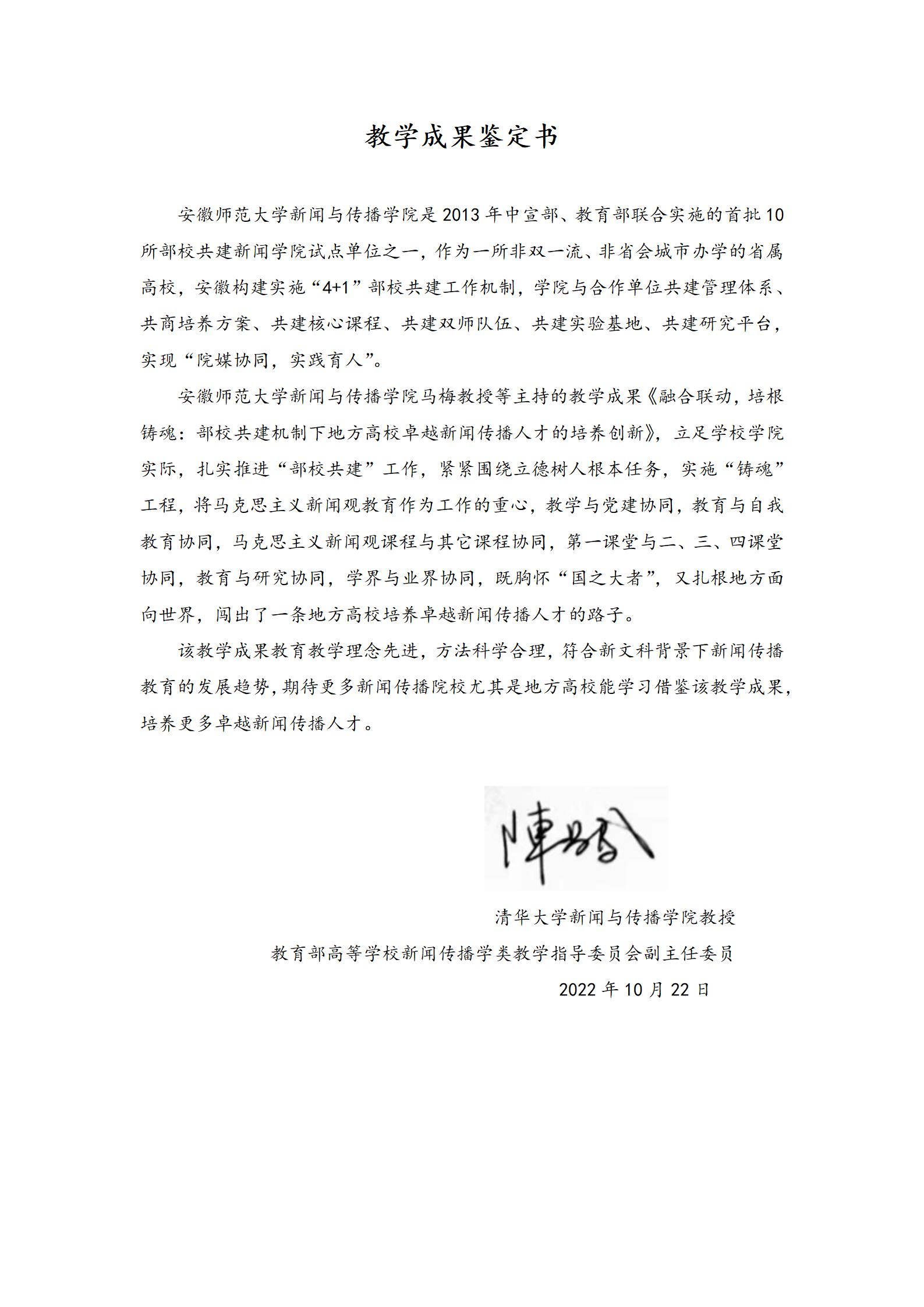 2022国家级教学成果奖申报之鉴定意见--胡正荣.docx