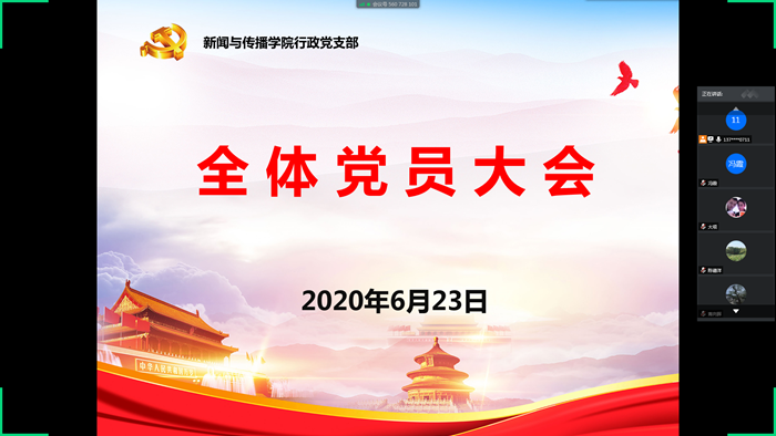 6月23日下午,中宣部、中国记协以网络直播形式举办了第六届“好记者讲好故事”巡讲活动,行政党支部将此次巡讲活动的在线收看作为本月的党员活动日活动。这是本学期以来,行政党支部共同在线收看的第四场直播学习活动。收看结束,支部党员冯霞在行政党支部qq群里激动的发出:14个记者的故事感人至深、凝聚力量。“一带一路”建设中的小故事诠释了中国正在以大国的姿态向世界分享发展成果,给非洲普通老百姓的生活带来了巨变;戍边战士保卫边疆,与无言的牦牛战士守望相助的故事诠释了界碑之后是祖国、界碑之上是使命的赤胆忠心;默默无闻的科技工作者们通过三代人的努力,接力奋斗让中国的机器人事业处于世界领先水平……记者们用他们的双脚、双眼带我们走到、看到感人的地方和故事,用百姓的视角,讲述老百姓的故事,用他们的良心和责任担负起社会正义。