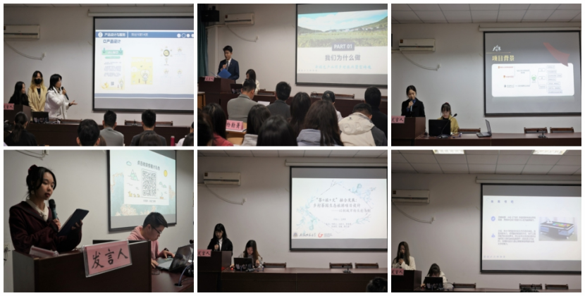 在前期会评基础上产生的13个团队项目参加了参加本次答辩会。其中2020级播音与主持艺术专业的白雪松汇报的项目《创享文旅—乡村特色产业文化融合公益助农项目》,以岳西县石关乡的特色产业茭白为例,通过产品设计、宣传策划等方式宣传打造品牌,以期进一步带动乡村特色产业和文旅事业发展。2020级网络与新媒体专业的张悦悦汇报的项目《IP赋能乡村振兴,设计培育美丽经济》详细介绍了团队IP设计砀山梨,借鉴徽州文化,以砀山梨为创作线索,进行头饰、服饰、颈饰等衣着特色设计,在每个设计背后伴有徽州特色文化建筑马头墙,充分展现安徽农产品特色。地球日记团队代表高鑫爽汇报的项目《地球日记—自然研学与自然博物馆一体化运营》,从中小学生课外时间得到进一步解放,家长教育观念转变,研学产品开始变得火热入题,展示了团队的现有成绩,充分展现了团队的创业实力与优异成果。其他各团队负责人也以高度凝练的语言、图文结合的展示深入浅出地展示了团队的创意想法、创新做法。每个项目汇报结束之后,评委老师针对不同团队提出了相应的答辩问题,也指出了项目的不足之处和需要改进的地方。