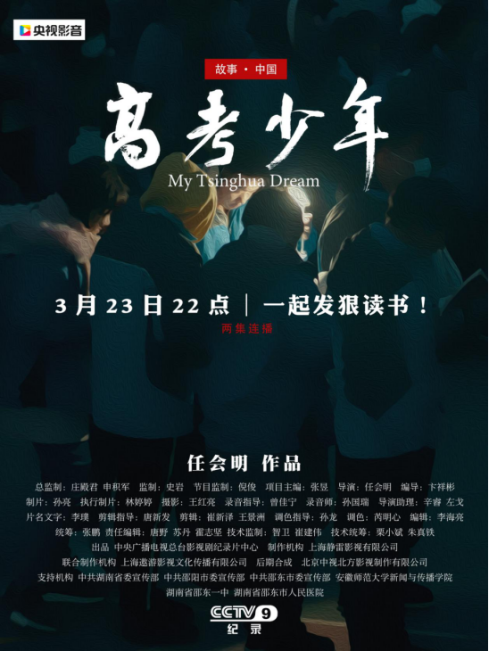 《高考少年》经中央广播电视总台影视剧纪录片中心立项,聚焦湖南省邵东一中高考学生,是关注高三学生青春成长,展现备战学生坚韧意志和坚定信念的纪录长片。当提及对拍摄的学生的印象时,该片编导、学院专业教师卞祥彬说:“他们奋斗的过程让我们很容易回想起自己读书的经历,同时我也能从他们的眼睛里看出对未来渴望的光。”作为主创的左戈同学也分享了让他印象深刻的一幕,“在午睡的时候,有一个孩子直接自己铺海绵垫躺在地上休息,这让我很受触动,那种为了梦想而战的执着一定会激发更多人的共鸣。”