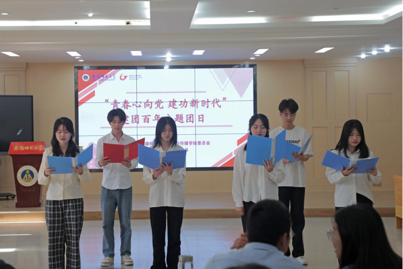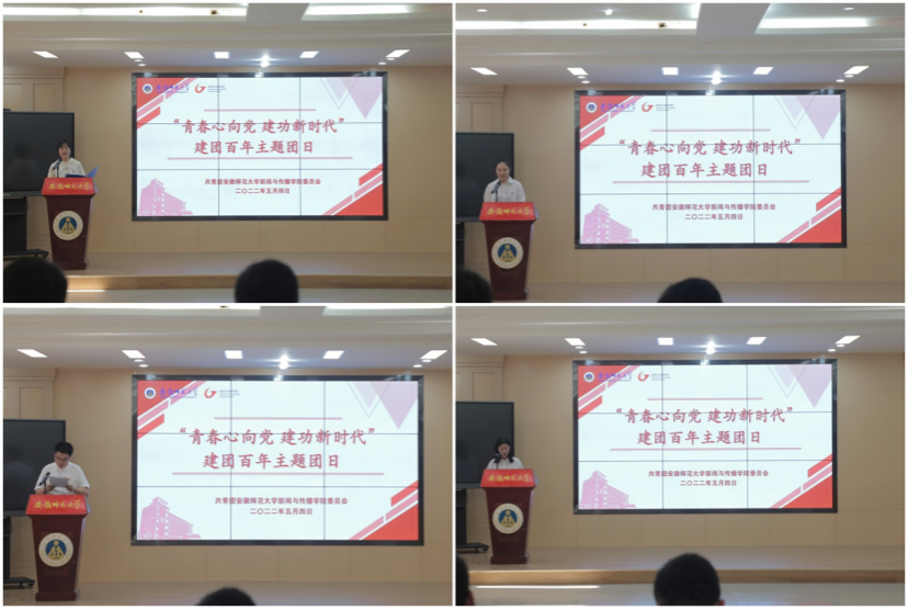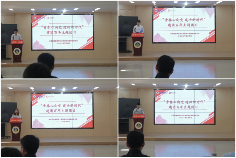 诗歌朗诵完毕后,学院团支部青年团员代表胡媛媛、曲国虹、蔡凌昀、曾俊玲,围绕建团百年畅谈心得感受。四位演讲人因身为共青团员而骄傲自豪,也因身为团员而奋斗进取。