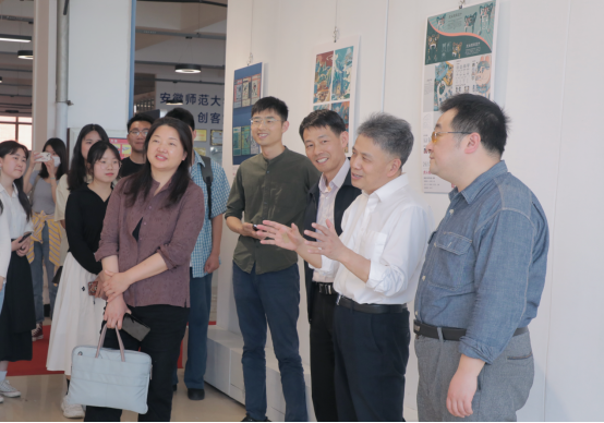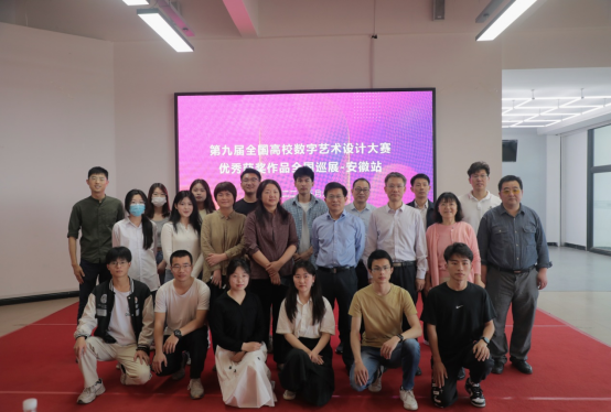 陆林指出了学科竞赛对人才培养的重要意义,指出大赛巡展的优秀作品围绕建党百年、可持续发展目标、脱贫攻坚、乡村振兴等主题展开,极具意义,强调师生们观摩展览是一次开放式、交互式的研讨交流,要通过观摩,深入研究,不断提高专业水准,多创作优秀作品,促进文化传播;崔光磊指出同学们通过参赛参展,能够将理论与实践充分结合,不断提升专业能力和综合素质;李丛芹指出本次展览作品具有较高艺术水准,希望同学们多学习、勤思考,为参加第十届全国高校数字艺术设计大赛做好充分准备。