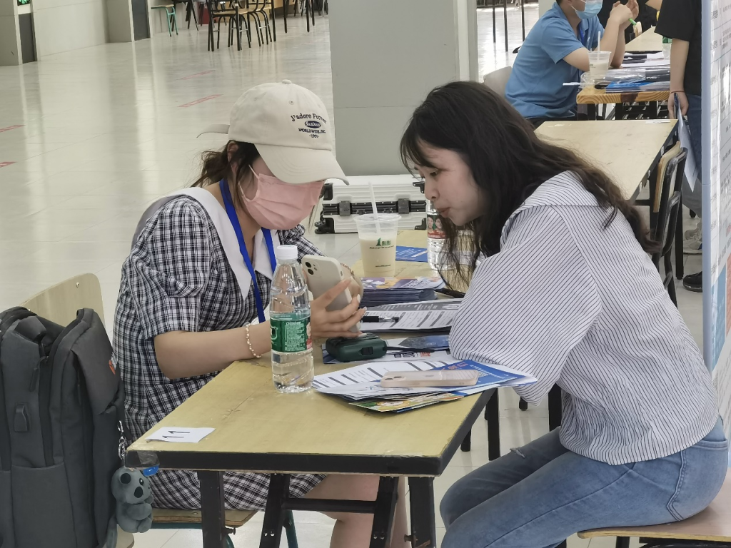 下午2点30分,招聘会准时开始,带着简历前来咨询和面试的毕业生络绎不绝。各大招聘单位也十分热情,在展板上清晰标明了薪资待遇、工作内容、签约流程、发展空间等信息,各专业毕业生根据自身的优势和就业意愿挑选心仪的企业。同时,学院学生骨干、党员先锋紧密配合,为参会人员提供全方位服务。