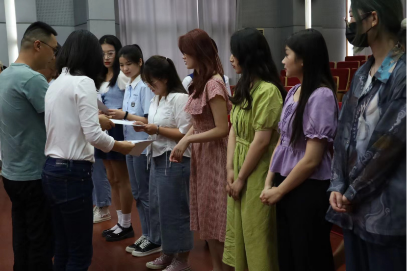 芜湖市市场监督管理局广告监管科科长俞俊宣读获奖名单并向获奖同学表示祝贺。广告协会秘书长、副秘书长、各捐赠企业代表人和教师代表为获得首届“芜湖市广协杯”奖助学金获奖学生颁发了荣誉证书。