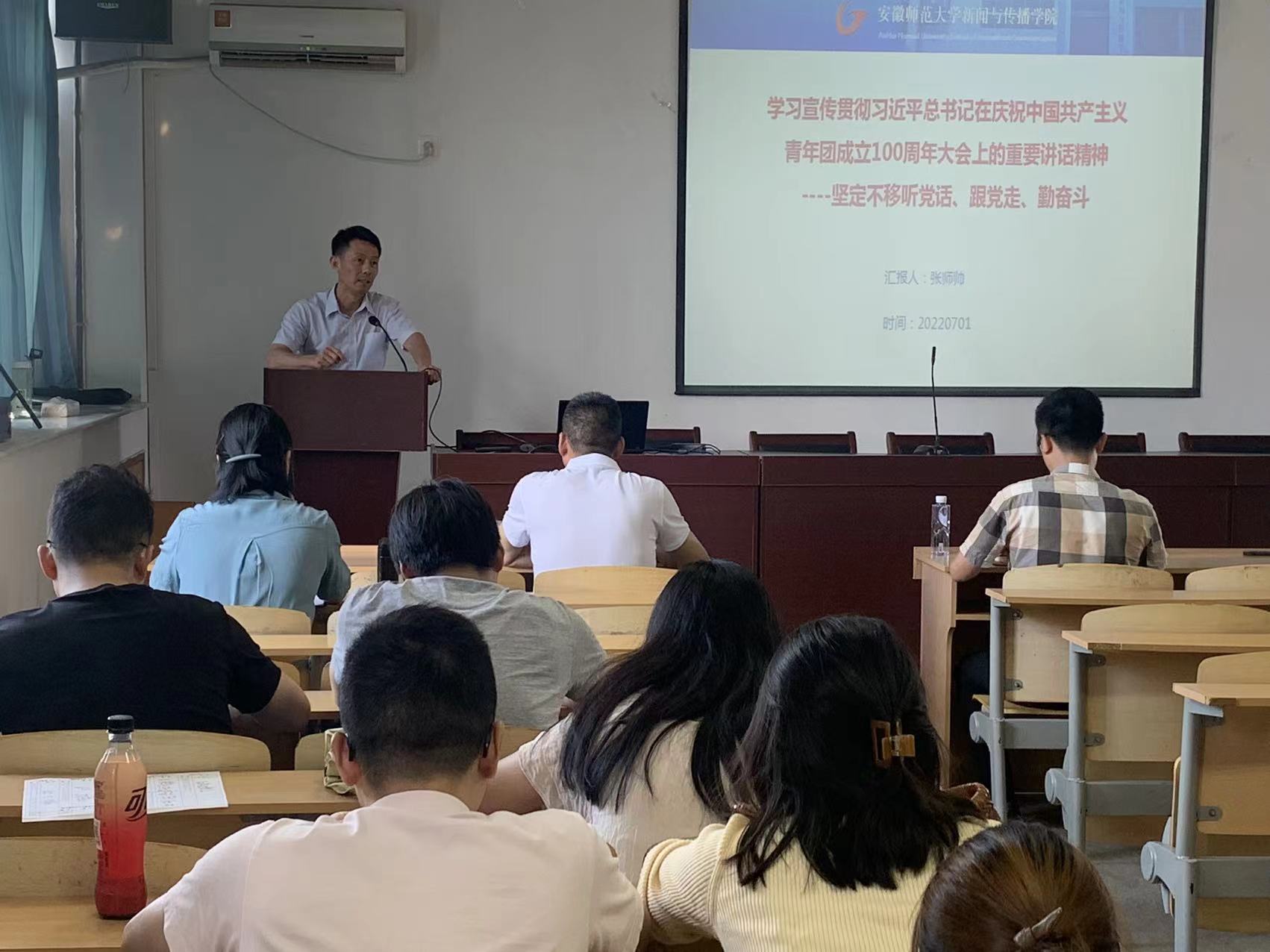 会上,张师帅带领全体教职工党员回顾了庆祝中国共产主义青年团成立100周年大会概况,与教职工党员一起深入学习了习近平总书记在庆祝中国共产主义青年团成立100周年大会上的重要讲话精神。张师帅指出,全体教职工党员要在坚定理想上起到模范带头作用,要坚定不移听党话、跟党走、勤奋斗。结合学习体会和工作实际,他强调,全体教职工党员要紧抓青年工作,做青年朋友的知心人、青年工作的热心人、青年群众的引路人,并对做好新时代学院共青团工作提出期望和要求,要求学院团委要在始终成为引领青年学生思想进步的政治学校、始终成为组织青年学生永久奋斗的先锋力量、始终成为党联系青年学生最为牢固的桥梁、始终成为紧跟党走在时代前列的先进组织上下功夫、花力气,要将广大青年学生紧密团结在党的周围,更好地发挥党的后备军作用。