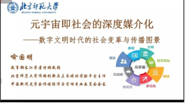 北京师范大学新闻传播学院学术委员会主任、教授、博士生导师喻国明作为学界代表讲话。他认为,在百年未有之大变局的背景下召开此次学术会议意义重大,当前面临的重要命题之一即要解决新闻传播学学科发展中的“守正创新”。他从创新的角度谈及对于未来学科建设的心得和看法:《元宇宙即社会的深度媒介化——数字文明时代的社会变革与传播图景》。他表示,“元宇宙”是人类社会的深度媒介化,元宇宙的实现过程是在共享的基础设施、标准及协议的支撑下,由众多工具、平台不断融合、进化而成,这将是一个充满不确定性的漫长过程。
