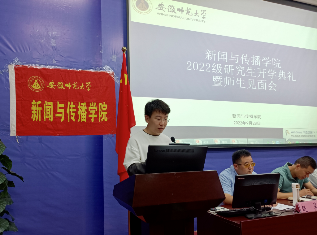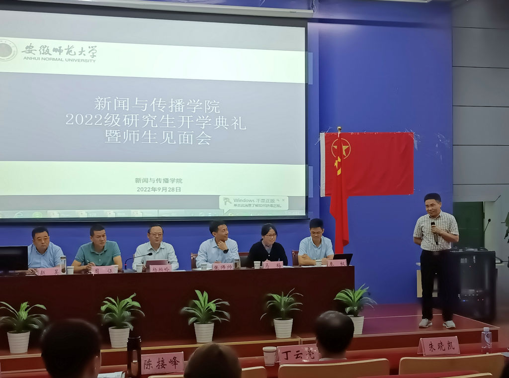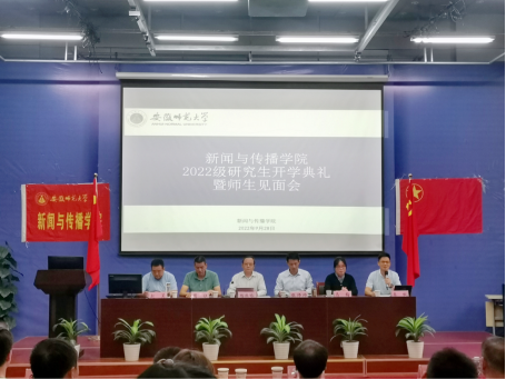 德赢AC米兰合作伙伴2022级研究生开学典礼暨师生见面会于9月28日在教学楼2010307召开。学院党委书记张师帅,执行院长杨柏岭,副院长周伍、马梅、赵昊,学院学术分委会主任丁云亮,新闻与传播学位点负责人朱晓凯,广播电视学位点负责人陈接峰,学院全体研究生导师、研究生辅导员、研究生秘书以及2022级全体研究生参会,会议由副院长秦枫主持。