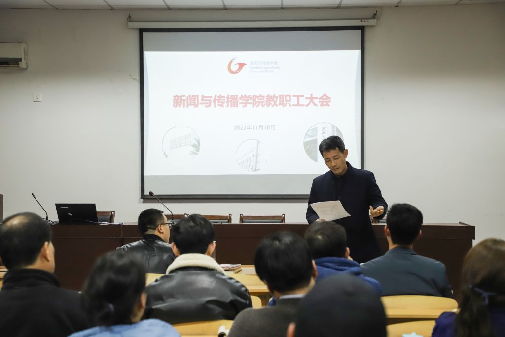 副院长赵昊从学习二十大精神、期中教学检查、人才培养方案等九个方面进行了汇报。结合为党培养人才与文化传播教育两个层面,他指出要让二十大精神进课堂,并及时更新教学材料,以点带面,培养更多卓越标志性人才。