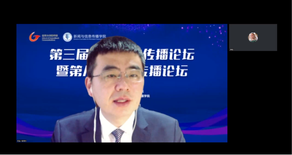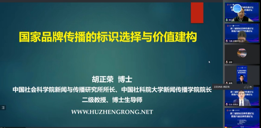 中国社会科学院新闻与传播研究所所长、中国社会科学院大学新闻传播学院院长、博士生导师胡正荣教授做学术致辞——《国家品牌传播的标识选择与价值建构》。胡教授通过2022年全球软实力指数排名,指出了我国当前在国际传播和国家形象建设方面存在的问题,并结合党的二十大报告中对于推进文化自信、铸就社会主义文化新辉煌的内容,在增强中华文化传播力影响力方面提出诸多见解。他强调当前中国在文化和文明层面提供给国际社会的供给依旧不够,国际传播的影响力与中华文化的厚重沉淀并不匹配,他从标识选择和价值建构两个方面对当下国际传播提出了建议,前者强调在世界舆论场中寻找中国特色,后者立足于人类命运共同体提倡价值转向。