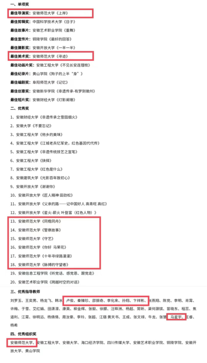 由中共安徽省委网信办、安徽省教育厅、共青团安徽省委员会、安徽省文联主办,安徽省青少年网络素养教育vwin德赢ac米兰官方网基地、vwin德赢ac米兰官方网德赢AC米兰合作伙伴、芜湖市委网信办承办,安徽省影视家协会合作的“光影话百年 文明润江淮”第二届安徽省大学生微电影展活动评审工作已于近期结束,本次活动受到省内外高校广泛关注,共收到来自全国30余所高校200余件作品。