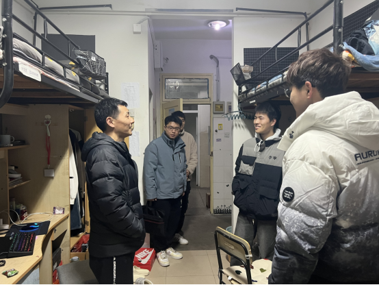 2月12日晚,学院党委书记张师帅带领院党政领导班子成员、全体专兼职辅导员深入学生宿舍,了解学生到校情况、新学期心理状况、开学准备情况,并就新学期第一课对同学们寄予了深切关照。