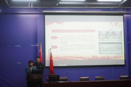 “桐花万里丹山路,雏凤清于老凤声”。第四组汇报人叶凌志、江舒娴在ppt汇报前放映中国共产党建党90周年重点影片《建党伟业》片段,带领同学们回首1911年到1921年这十年巨变。两位汇报人呼吁在场学生紧跟中国共产党的脚步,追随那片红旗上五角星的光。