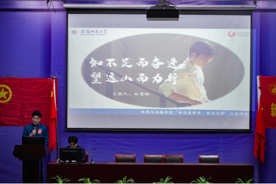 21名参评学生按序上台汇报演讲,以PPT形式展示个人事迹和所得荣誉,学院各年级专业学生代表共同观摩了此次汇报。