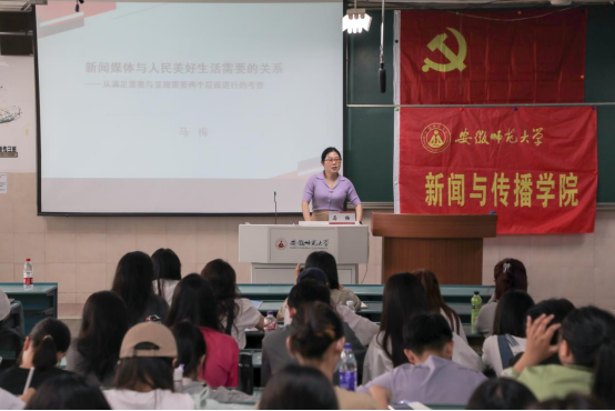 马梅老师从政治高度上提纲挈领,以党的二十大报告会上习近平总书记的讲话引入,“必须坚持在发展中保障和改善民生,鼓励共同奋斗创造美好生活,不断实现人民对美好生活的向往”。为满足人民美好生活需要,新闻媒体该如何发力呢?马梅老师抽丝剥茧、条分缕析,理论中掺杂着生动的现实案例,从“人民美好生活需要的内涵和新闻媒体的作用”、“新闻媒体对于人民美好需要的满足”以及“新闻媒体对于美好生活需要的媒介呈现”三个方面讲述。