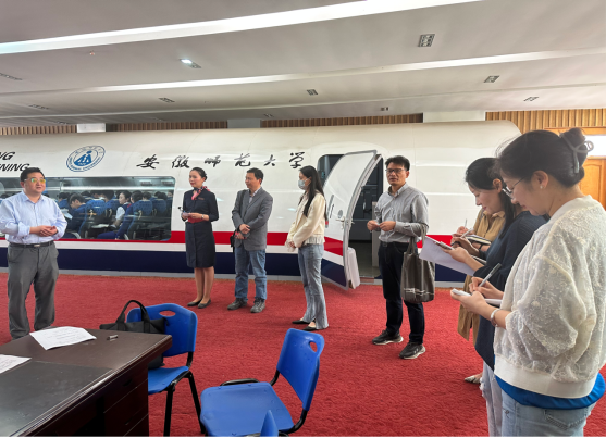 5月25日上午,航空服务艺术与管理专业陈圆圆老师的《民航客舱服务与管理Ⅰ》教学观摩课在静态模拟客舱开展,主要内容是客舱应急设备检查和服务设备检查演练。学院副院长周伍、赵昊、学院教学督导组张泉泉、徐丽娜、赵相武老师、法学院法学专业李路根老师、航空服务艺术与管理专业王娟、潘倩倩、俞应芬老师,教学办老师参加此次观摩课。