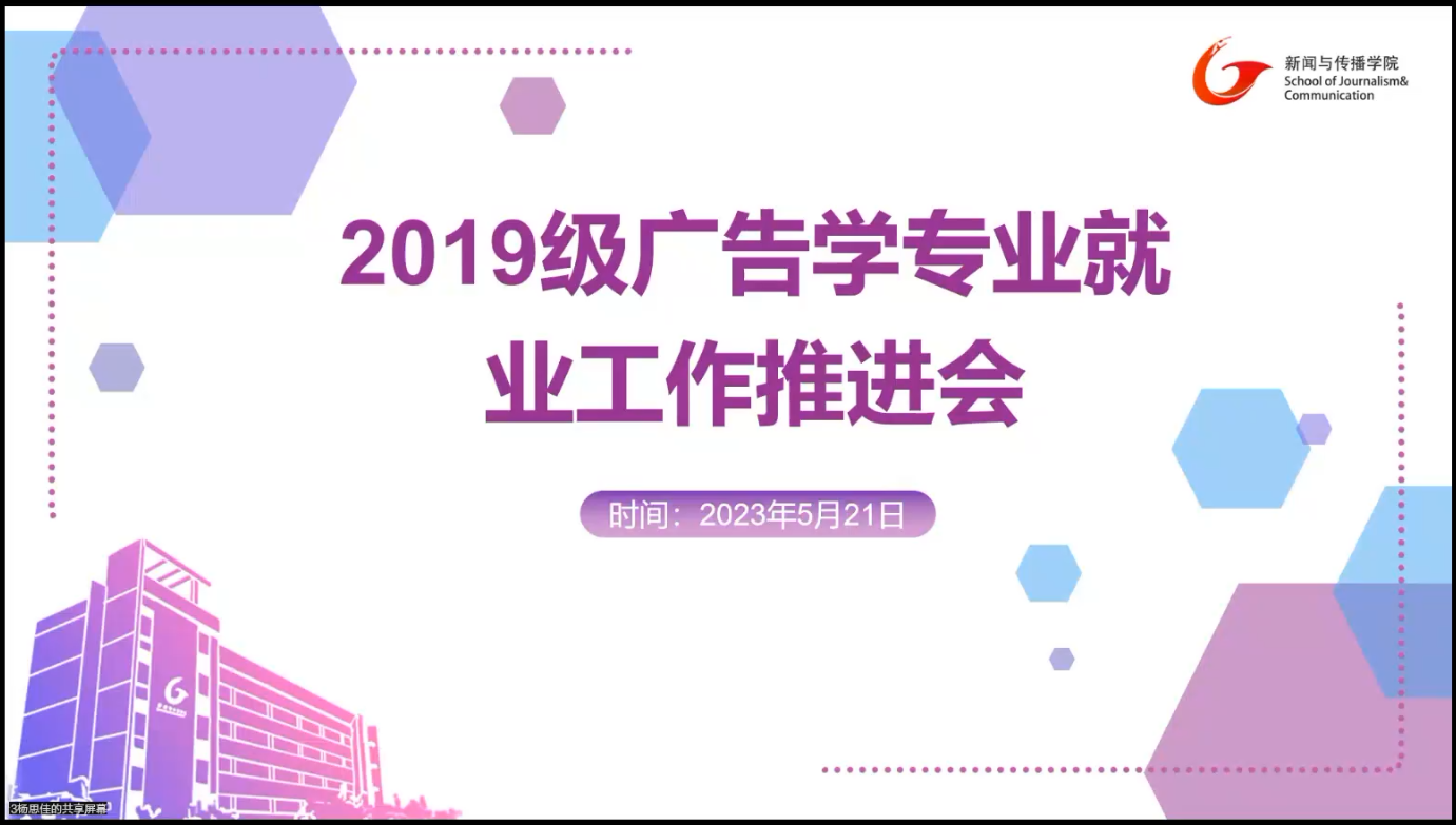 为分析当前就业形势,明确任务目标,齐心协力共同实现毕业生更充分更高质量就业目标,5月21日晚,2019级别广告学专业于腾讯会议召开2019级广告学专业就业工作推进会,广告学专业负责人罗铭参加推进会,会议由辅导员章子悦主持,辅导员马星宇老师主讲,2019级广告学专业未就业同学参加会议。