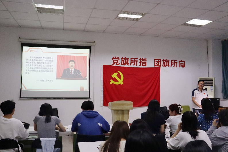 院党委副书记吴青山列席了会议,并以“坚定理想信念是共产党人安身立命的根本”为主题作专题党课报告会。课上,吴青山以短片《较量无声》为引,分析了苏联解体的原因和我国面对的恶劣的外部环境,强调共产党人必须坚定理想信念的原因及重要性。他指出,坚定理想信念要做到两方面,一是“学思用贯通”,要加强对《中国共产党章程》以及党的发展过程中所产生的经典著作的学习,要在学习中不断强化自身理论武装。二是“知信行统一”,作为学生党员,要切实发挥好先锋模范作用,要在工作、生活和学习中证明自己是一名合格的党员。