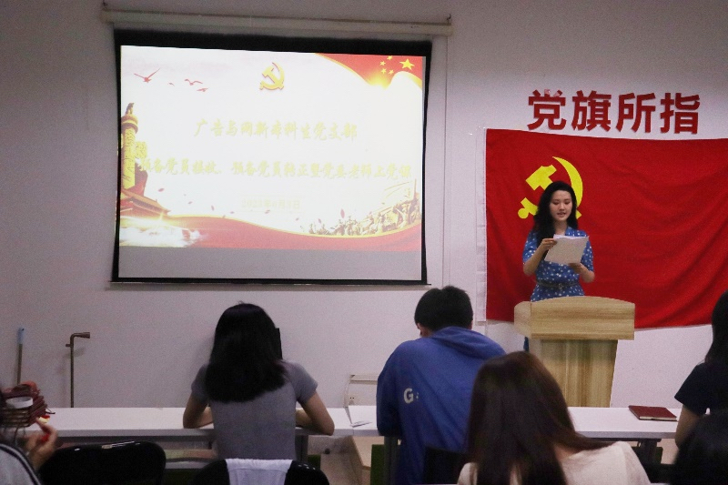 6月3日,广告与网新本科生党支部在学院三楼302会议室召开支部接收预备党员、转正大会暨专题党课报告会。广告与网新本科生党支部全体党员及预备党员参加了会议,会议由支部书记李梦圆主持。