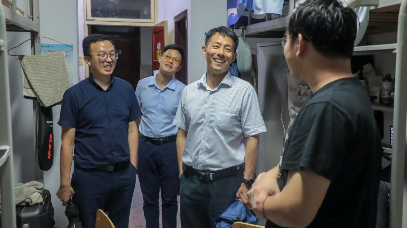 师生话别,送一次亲切交谈的离行。6月19日晚,2019级毕业生离校之际,院领导、老师深入到毕业班的每一间寝室,与同学们深情话别。“毕业后去哪里工作?”“恭喜收到了录取通知书!”“假期可以和要好的朋友们来一场有意义的毕业旅行。”“可以提早进入研究生学习阶段,早作准备。”“到基层工作要放平心态。”……在寝室,领导老师都与毕业生亲切交流问候,了解同学的毕业去向并提出富有针对性的意见和建议。当了解一些同学升学名校、到海外留学、进入互联网大厂、到西部支教、到基层岗位服务时,老师们衷心地为他们点赞,对于部分仍未落实毕业去向的同学,老师们也为他们加油打气,勉励他们适度降低预期,以”先就业再择业“的观念在实践中渐进实现人生理想。毕业生在交流中表达了对母校、母院悉心培养、关照的感谢,对学院精心举办的毕业典礼表示谢意。
