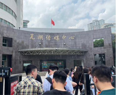 学院一行到达实习基地后,就学生实习任务与基地负责人做了详细交流,为下一步学生们顺利实习奠定基础。芜湖传媒中心总编辑韩万春热情接待了学院领导、教师与实习学生,在交流中,韩万春首先详细介绍了芜湖传媒中心发展情况,表示中心正着力打造新型主流媒体,着力打造省域副中心城市的智慧生活平台,强调需要复合型人才,需要院媒协同、理论与实践相结合。最后,他再次欢迎各位实习生的到来,同时希望大家在实践中学到真知识、学到真本领。