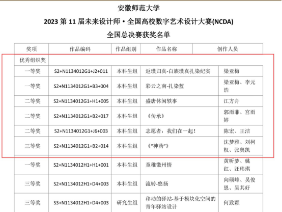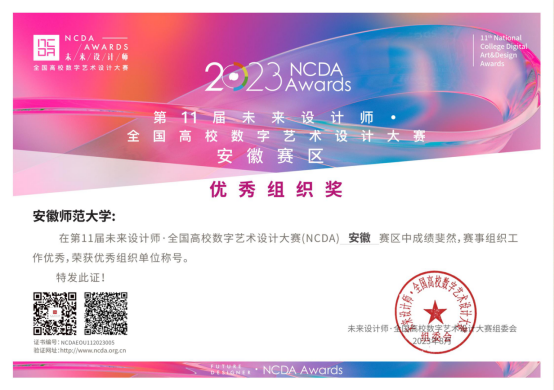 8月31日,第11届未来设计师·全国高校数字艺术设计大赛(NCDA)全国总决赛奖项公布。经严格选拔,我校选送200余部作品参加评审,获得了系列奖项:国赛共获奖9件(一等奖3件、二等奖3件、三等奖3件);省赛共获奖76件(一等奖20件、二等奖25件、三等奖31件)。我校获得全国“优秀组织奖”和“省级优秀组织单位”等荣誉。
