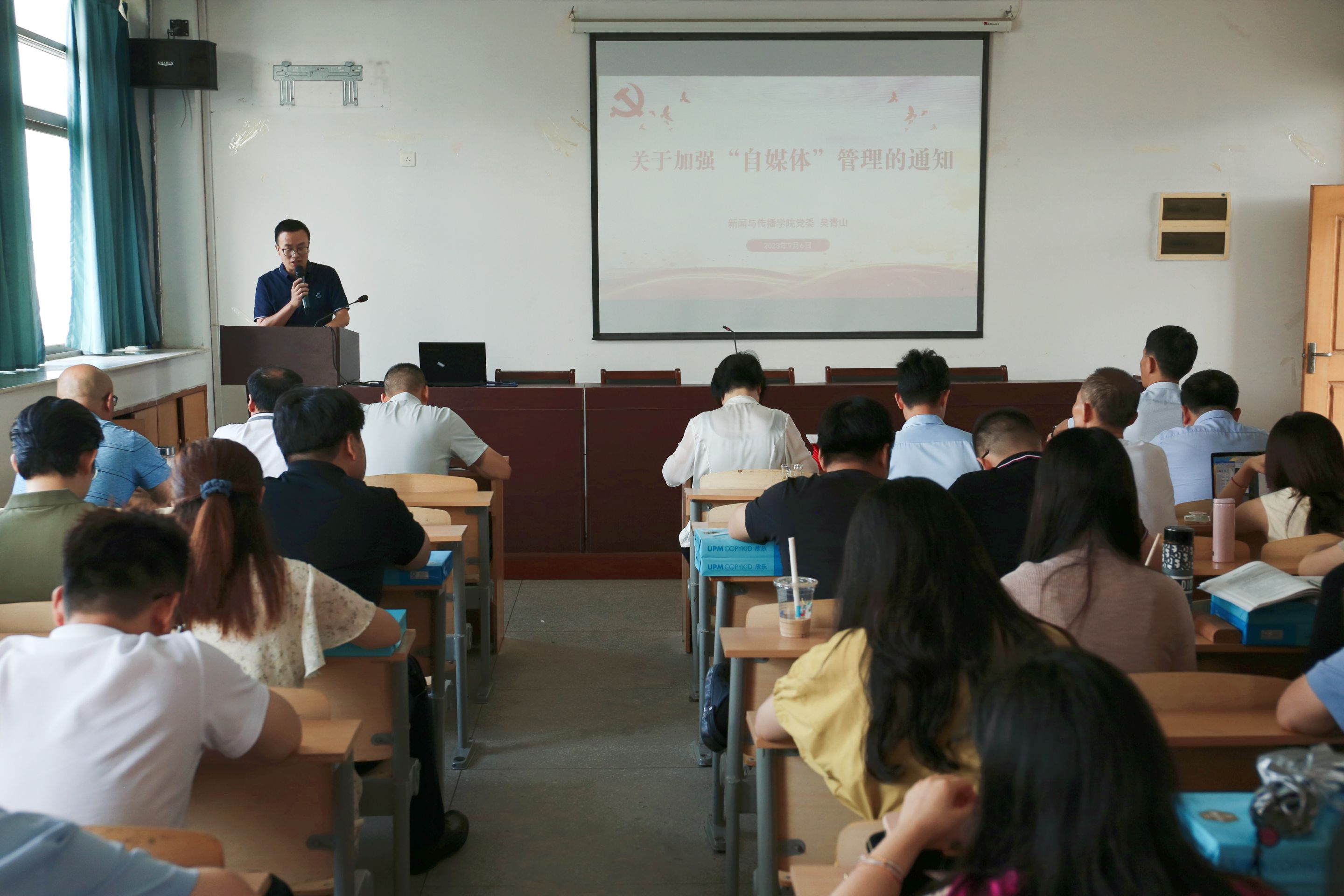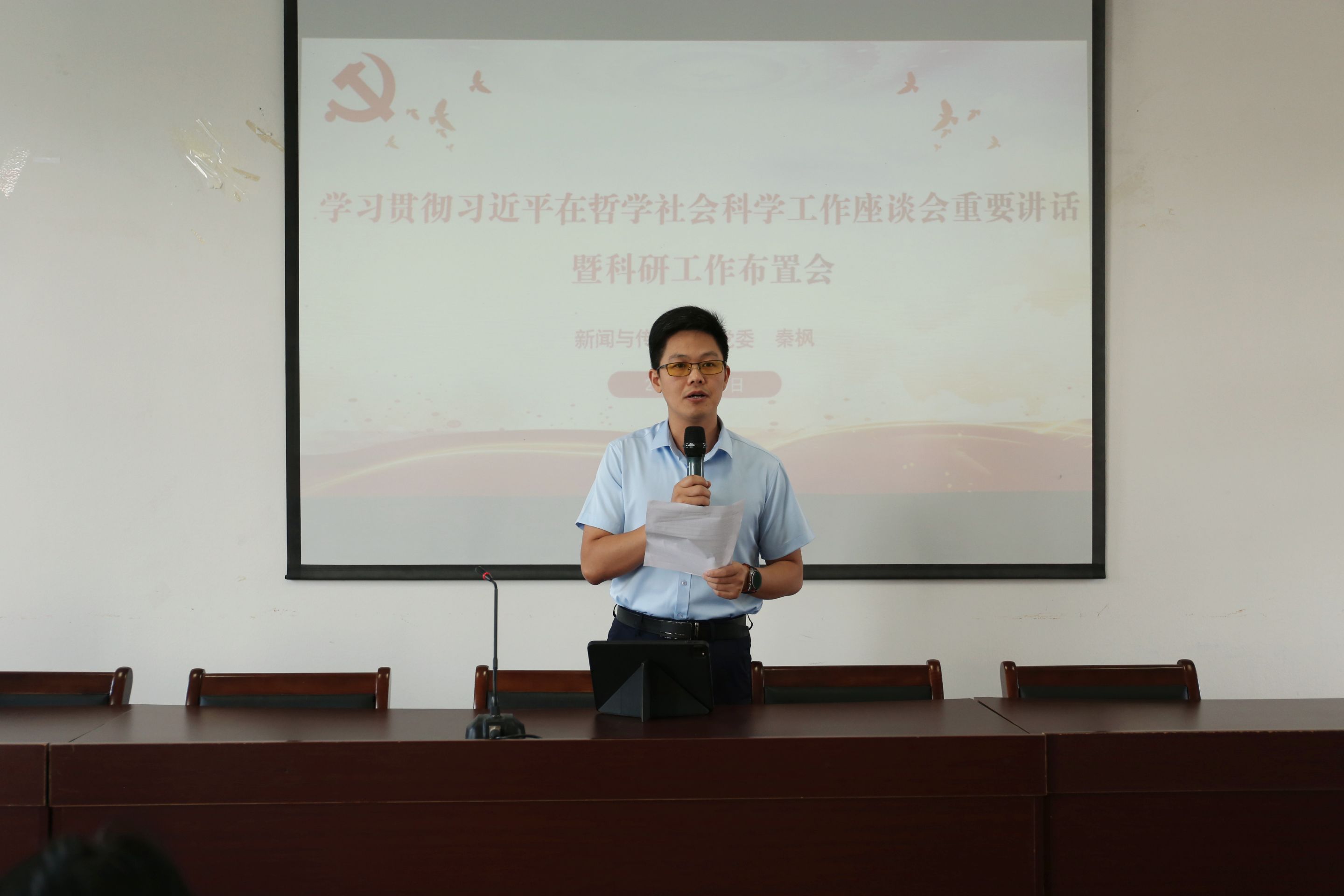 会上,党委副书记、纪委书记吴青山领学了《关于加强“自媒体”管理的通知》,并强调指出在学院师生“自媒体”管理中要形成工作闭环,落实信息发布“三审三校”制度,进一步加强学生网络思政教育,不断提升学生明辨是非、抵制不良舆论影响的能力,提倡引导广大师生做勇于监督、文明上网、理性发声的新时代合格网民。副院长赵昊领学了习近平总书记关于教育的重要论述相关内容,他指出,全体教职工要始终牢记习近平总书记的殷殷嘱托,要把良好师德修养摆在首位,以扎实的学识教书育人,以强烈的责任心关心学生成长,着力培养党和人民放心的卓越新闻人才。副院长秦枫带领全体教职工重温了习近平总书记在哲学社会科学工作座谈会上的重要讲话精神,他指出,习近平总书记的讲话高屋建瓴、大气磅礴,充满了文化自信,读来令人振奋,对全体教职工来说是一种激励,更是一种要求,希望全体老师立时代潮头、通古今变化、发思想先声,做到学与用、知与行的高度统一,积极为构建中国特色哲学社会科学体系做出贡献。