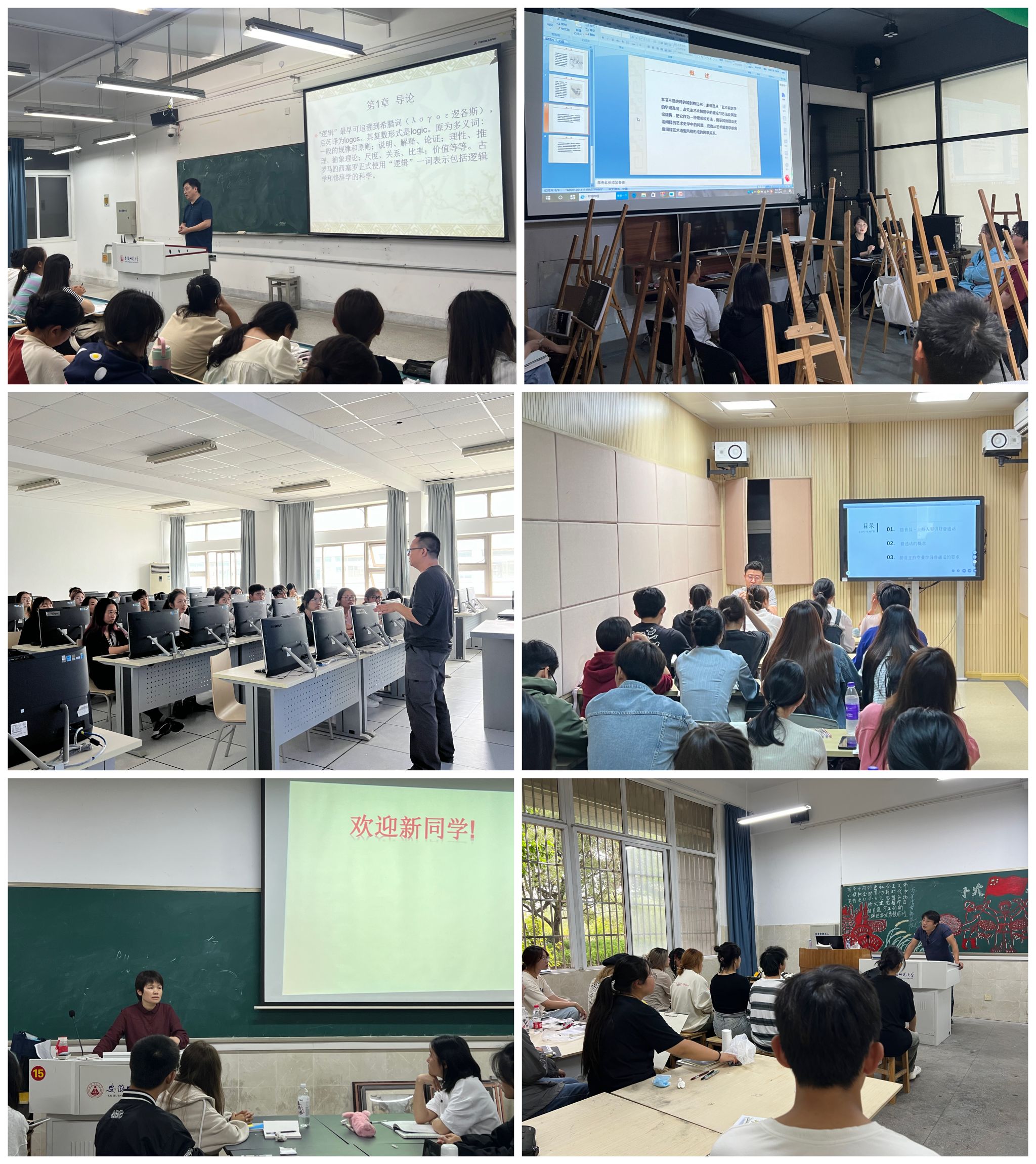“开学第一课是一个全新的开始,是追求知识和梦想的起点。”《美术设计基础》的张忠娟老师在课堂上充满激情地进行了开学第一课的演讲,充分调动了同学们的学习积极性,为优质课堂的构建奠定了良好的基础。《人体解剖与透视》的徐谨力老师和丁薇老师在人体解剖与透视的课堂上对同学们的绘画姿势、绘画方法提出了细致具体的要求,对同学们的问题也做出了现场解答,两位老师也希望同学们通过人体解剖与透视课程的学习能够在动画领域更好的施展自己的才华。《播音与主持语音基础》的高郡隆老师在课上通过对教学大纲的解读来引导学生要学什么,怎样去学。课上,同学们在老师的带领下,学习了语言发声理论,并进行了实践练习操作。《影视画面造型》的陆青霖老师以优秀学生潘志成的事迹为引入,勉励学生们以此为榜样去不断超越自己,积极引导学生建立起对影视摄影与制作专业的兴趣。沈幼平老师循序渐进地为同学们阐释应用语文的魅力,希望通过《应用语文》的教学来提升同学们的写作能力和综合素养。不同专业的老师们的目标无一例外,他们都致力于通过自己的教学,使同学在积累专业理论知识的同时,也提升自己的专业实践能力,做到德育和智育相统一,全员全过程全方位育人。