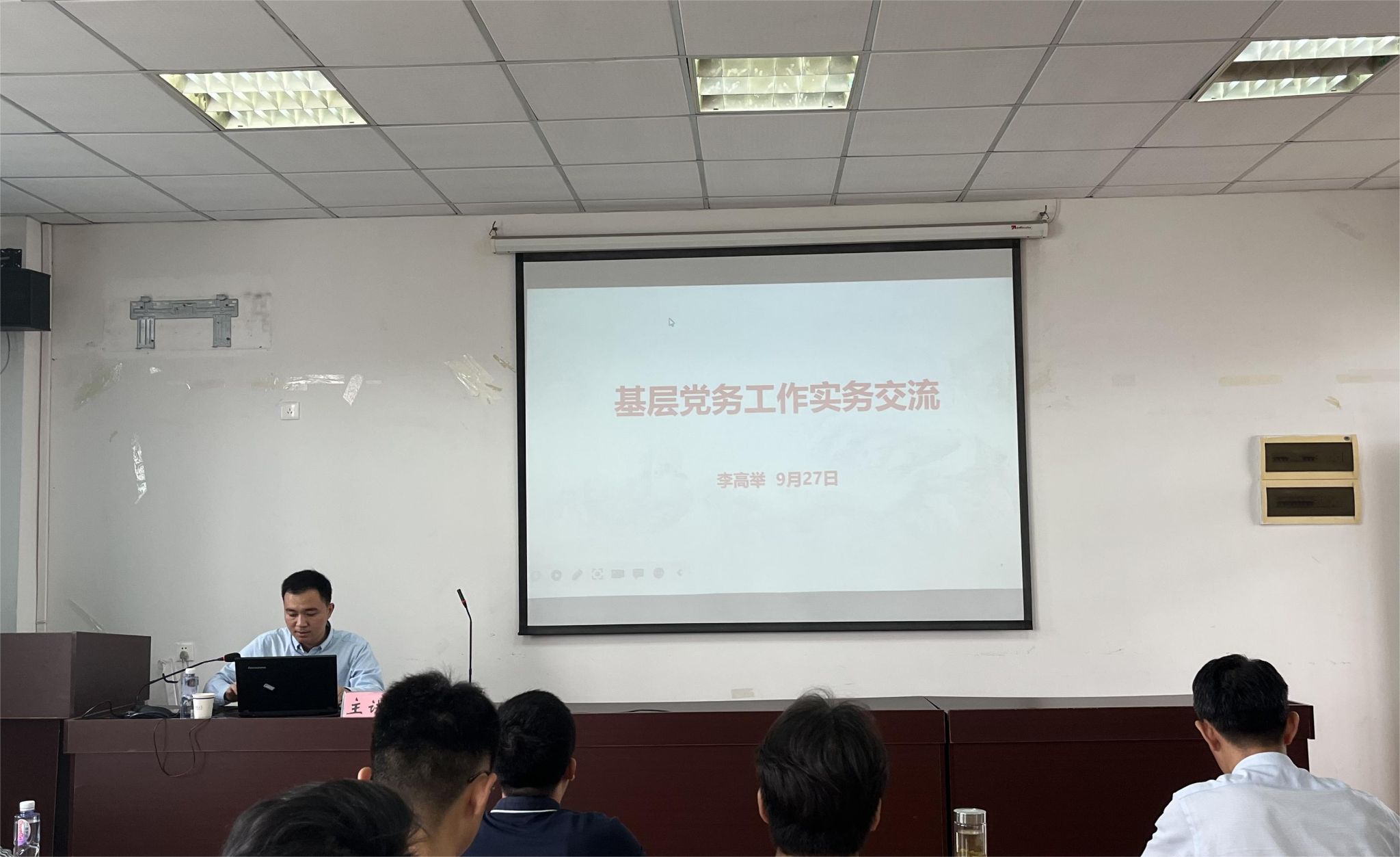 李高举从落实好“三会一课”提升组织生活质效、坚持政治标准提高发展党员质量、做好新形势下党员组织关系管理三个方面对基层党务工作实务进行交流。他列举了“三会一课”上容易出现的问题、考核的硬性指标、基本任务和要求以及如何改进提升,带领大家回顾了发展党员工作程序演变历程,解读了《中国共产党发展党员工作细则》、关于党员组织关系转接工作的政策规定等,提出要加强对毕业生、重点领域和人员中的党员组织关系管理。
