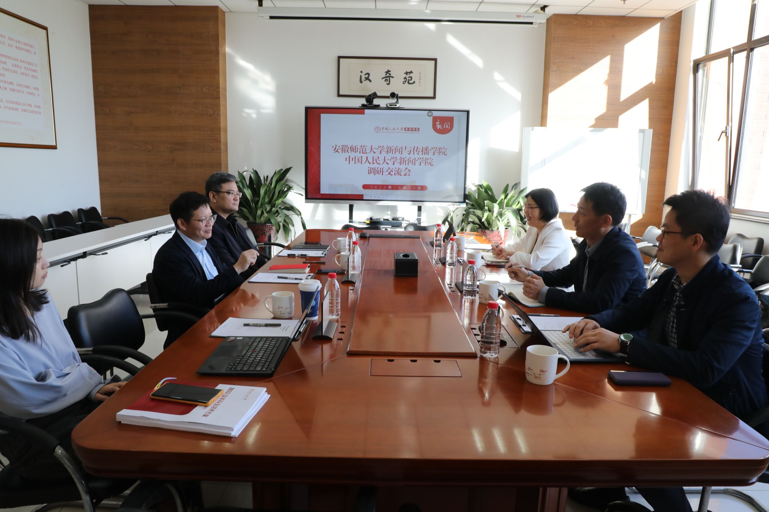 在中国人民大学的明德新闻楼,新闻学院院长周勇、院党委副书记王宝奎等热情接待了学院一行。在座谈会上,双方就新闻传播教育的现状与未来发展进行了深入探讨,分享了各自学院的教学模式、课程设置以及人才培养等方面的经验和想法,为今后双方在课程合作和学生交流提供了更多的可能性。此次调研,为我院新闻传播教育的改革与创新提供了新思路,未来我院将继续加强与国内一流高校的合作,在师资培养、教育教学、学科建设等方面深化合作,共同进步,推动新闻传播教育事业发展,培养更多优秀的新闻传播人才。