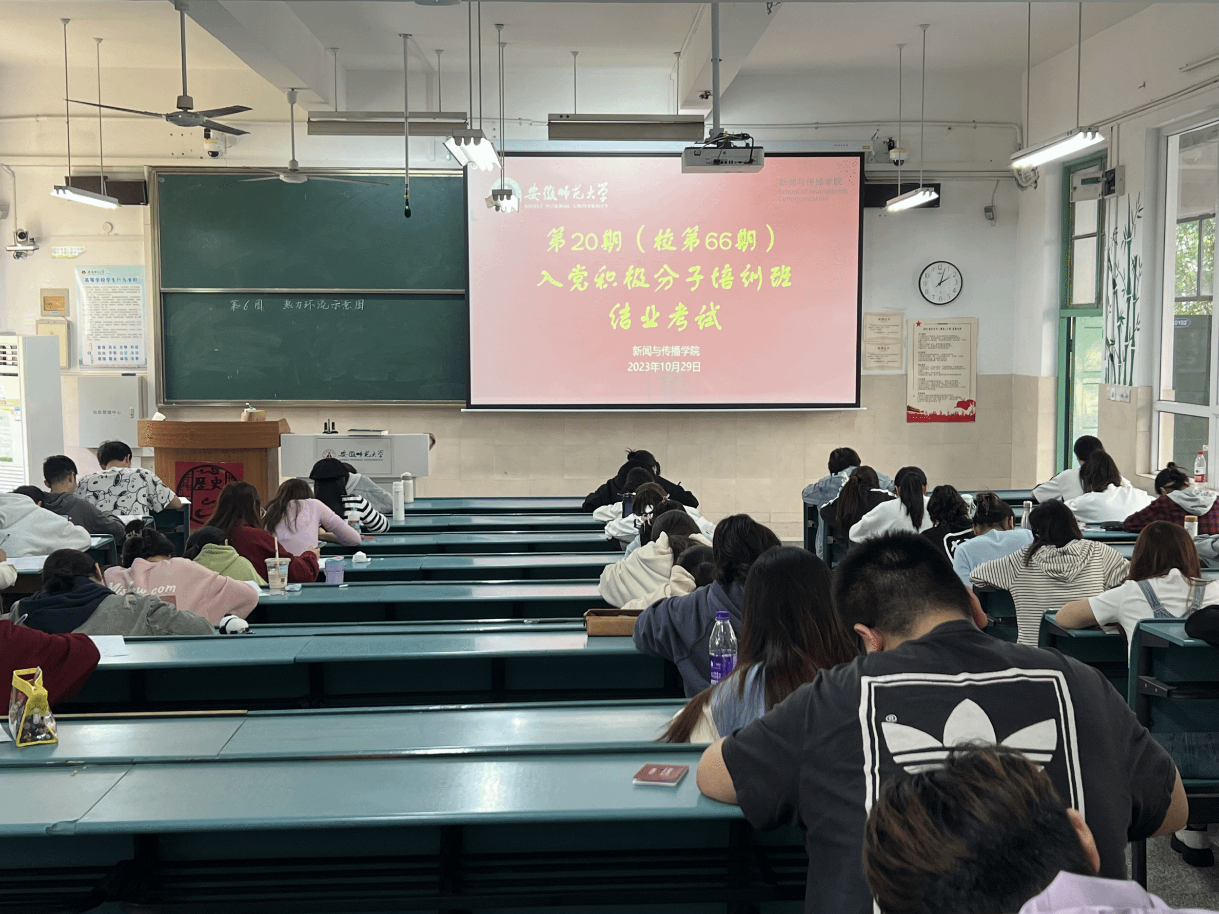 10月29日下午,培训班结业考试在行知楼进行,本次考试围绕新党章、党的二十大报告等重点内容对学员进行全面考察。