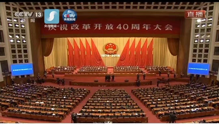 上午十时整,大会直播开始,院领导们和同学们认真观看学习。大会上,王沪宁宣读了《中共中央、国务院关于表彰改革开放杰出贡献人员的决定》。决定指出,党中央、国务院决定,授予于敏等100名同志改革先锋称号,颁授改革先锋奖章;同时,为感谢国际社会对中国改革开放事业的支持和帮助,向阿兰·梅里埃等10名国际友人颁授中国改革友谊奖章。中共中央总书记、国家主席、中央军委主席习近平出席大会并发表重要讲话。