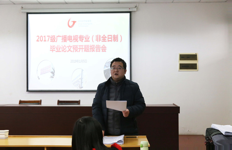 开题报告是专业学位研究生培养过程的必修环节,而学生通过预开题报告答辩,可以在众导师、专家的指导下,更好的明晰解决课题的思路,使研究目标,研究方法和研究方案切实可行,从而提前发现问题,少走弯路。此次共有7名17级广播电视专业(非全日制)同学进行了开题报告答辩,同学们依次通过PPT展示的方式,具体阐述了自己的选题背景、选题意义、研究方法、内容框架等方面的内容。从总体来看,同学们的毕业论文选题涉及短视频研究、人物纪录片、电视专题片等多个广播电视学领域。参与评审的导师都对参与开题答辩学生的态度给予了肯定,然后针对论文中的问题意识、理论与实践关联、论文框架逻辑、研究方法等,提出了具体的修改意见,并就今后实践可能出现的问题进行了分析,给予了建议。