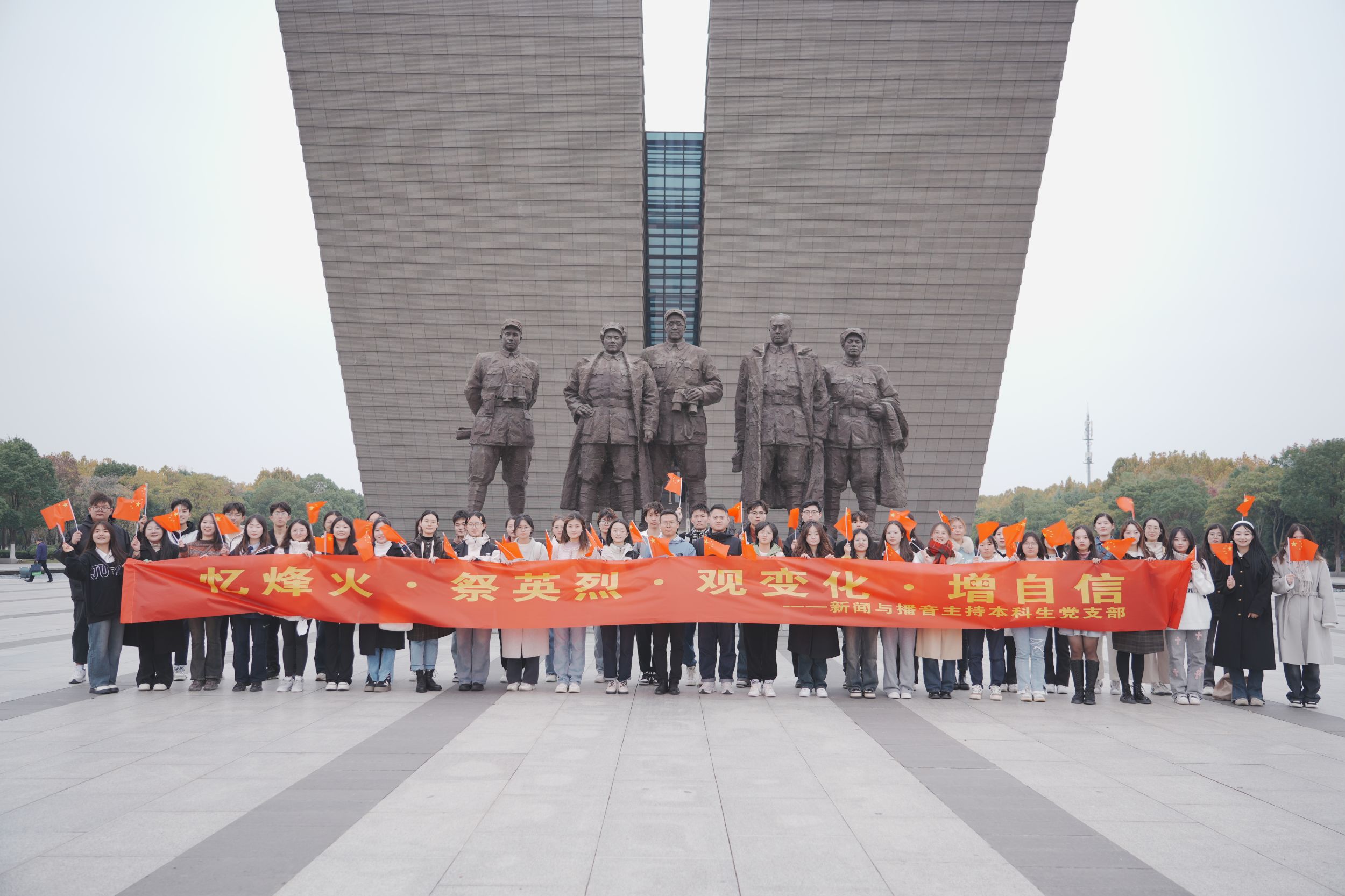 在渡江战役纪念馆,新闻与播音主持本科生党支部深入了解了渡江战役的历史背景、重要意义及革命先烈的英勇事迹,重温了入党誓词,高唱国歌。学生党员代表朗诵《七律·人民解放军占领南京》、《参观合肥渡江战役纪念馆有感》,借专业技能为解放军战士献上一曲赞歌。支部书记马星宇在微党课上讲述了党的伟大奉献、渡江战役来之不易的胜利以及渡江战役纪念馆选址的历史渊源,同学们感触颇深。