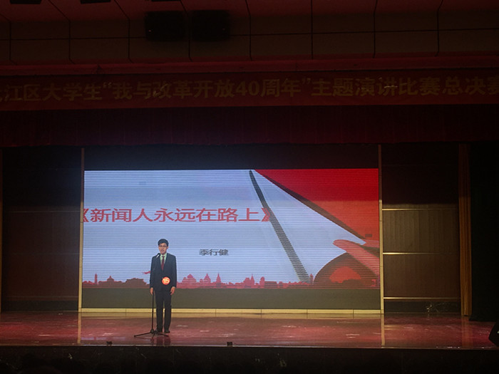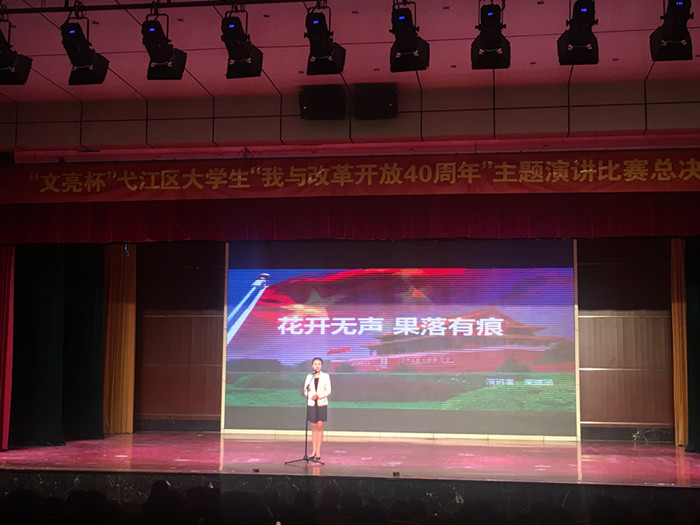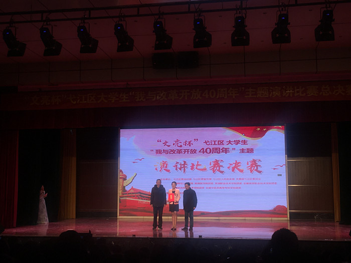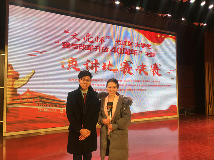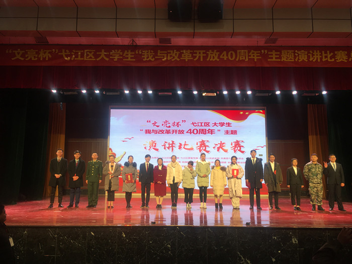 2018年12月27日,“文亮杯”弋江区大学生“我与改革开放40周年”主题演讲比赛总决赛在芜湖职业技术学院举行,区委常委、宣传部长蒋胜出席活动并致辞。