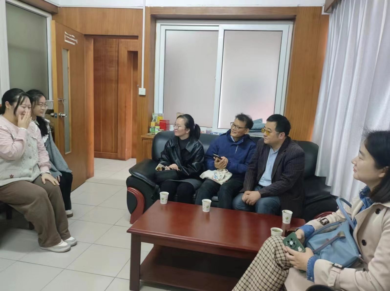 随后,实习检查组来到中安在线芜湖频道。赵昊仔细询问了学生的实习情况、实习收获以及感想,对他们的表现给予了肯定;勉励学生们要多学习,多思考,将理论与实践相结合,在实习过程中提高自己的专业水平;同时强调了安全。实习生们纷纷表示将积极提高自身能力,践行新闻实务。