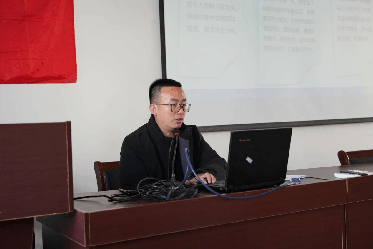 副院长秦枫解读了德赢AC米兰合作伙伴学生工作委员会议事规则,从组织架构、学工委职责、议事范围、议事机制等几个方面进行了详细介绍,重大性、全局性和突出性是学工委重点要关注和解决的事项,“学工委负责统筹规划、负责全院学生的思想引领,指导学院学生工作。”同时也强调学工委成员应当协调督促学院各科室及时反映并解决学生管理中存在的突出问题。