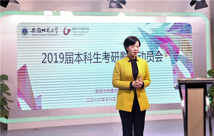 宋静在动员讲话之后,鼓励同学们为了个人 、为了家庭、为了新传的荣誉而战,在最后的日子里拼一把,打好至关重要的最后的一仗!随后,学院还对考研学子进行了慰问,张师帅、杨柏岭、专业负责人分别为考研学子们发放了慰问品并与同学们合影留念,小小的会场充满温馨与喜悦。