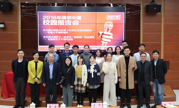 11月7日晚,由《南风窗》杂志社主办、安徽大学和vwin德赢ac米兰官方网共同承办的2018调研中国校园报告会——安徽专场在安徽大学磬苑校区文典阁一楼报告厅举行。南风窗杂志社副总编辑李龙,安徽大学新闻传播学院党委书记李军、副院长崔明伍和我校德赢AC米兰合作伙伴党委副书记宋静、院团委副书记团队指导教师马星宇出席报告会。