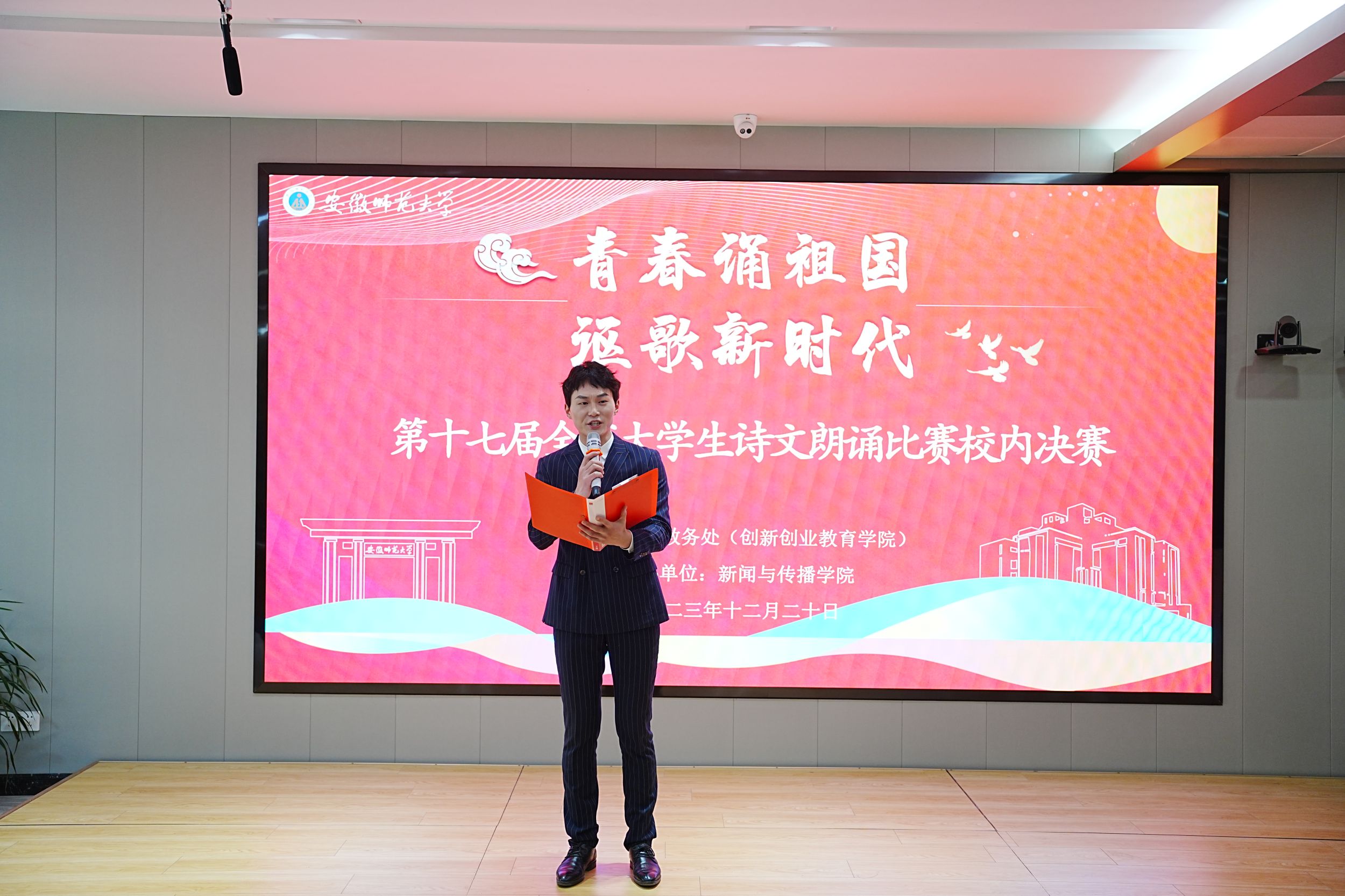 为深入学习贯彻落实习近平文化思想,激发大学生传承文化、诵读经典的热情,提高大学生文化素养和综合素质,2023年12月20日下午,第十七届全省大学生诗文朗诵比赛校内决赛在一站式学生社区·学生之家举行,本次活动由教务处主办,德赢AC米兰合作伙伴承办。