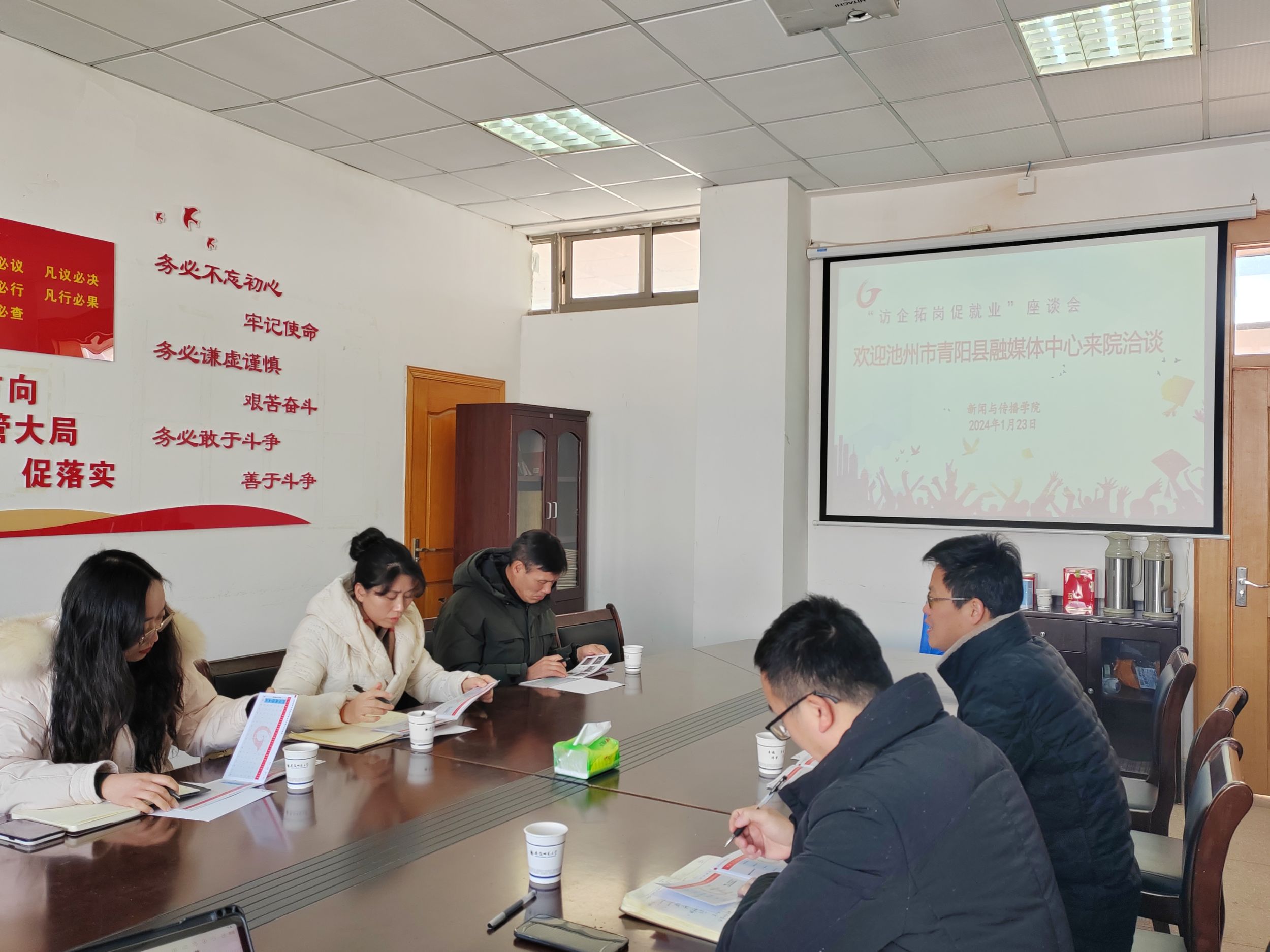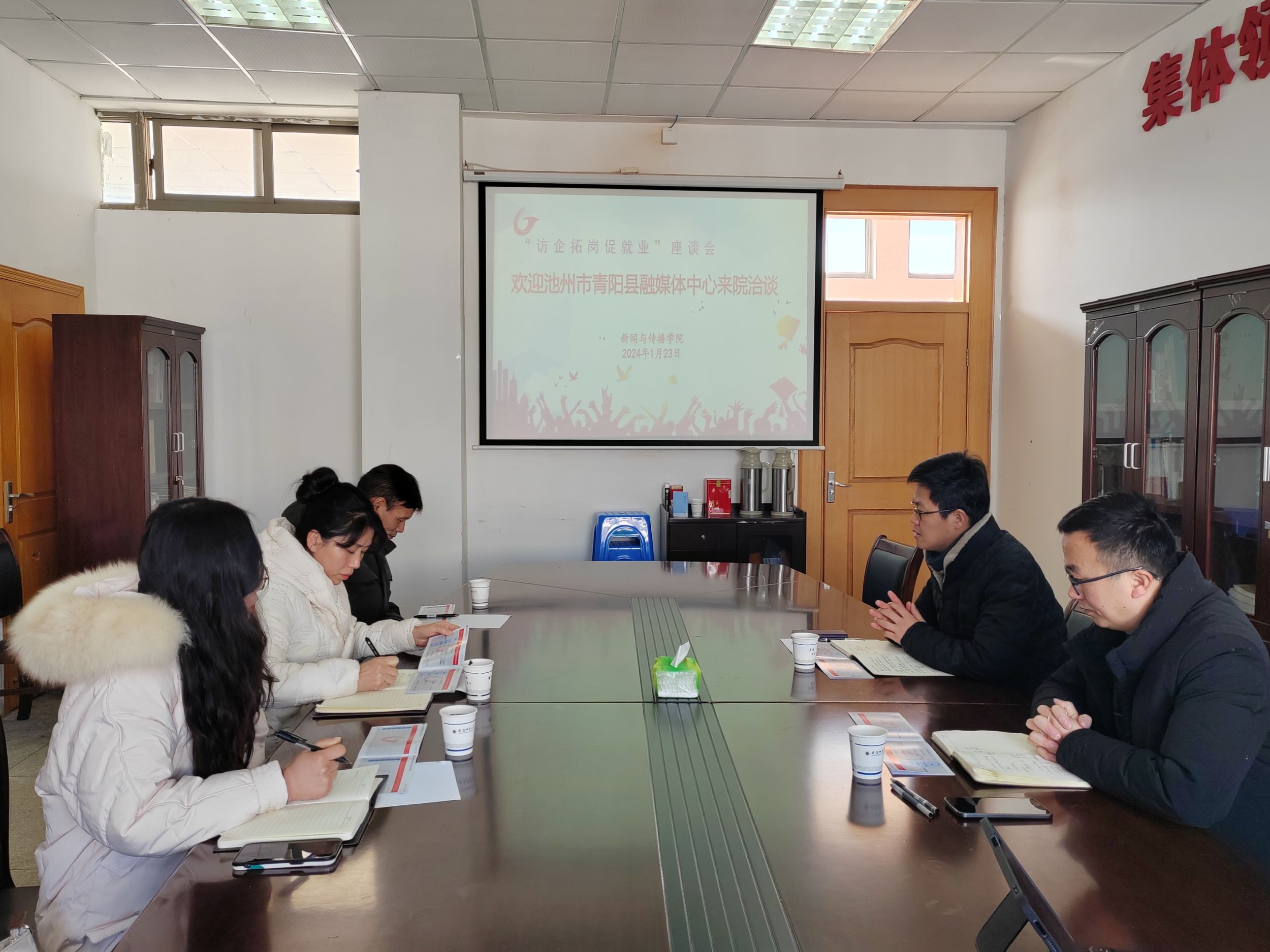 为推动毕业生高质量就业,1月23日,德赢AC米兰合作伙伴邀请池州市青阳县融媒体中心来院交流毕业生就业事宜,德赢AC米兰合作伙伴党委副书记吴青山、副院长秦枫、毕业班辅导员刘熠参加会议。