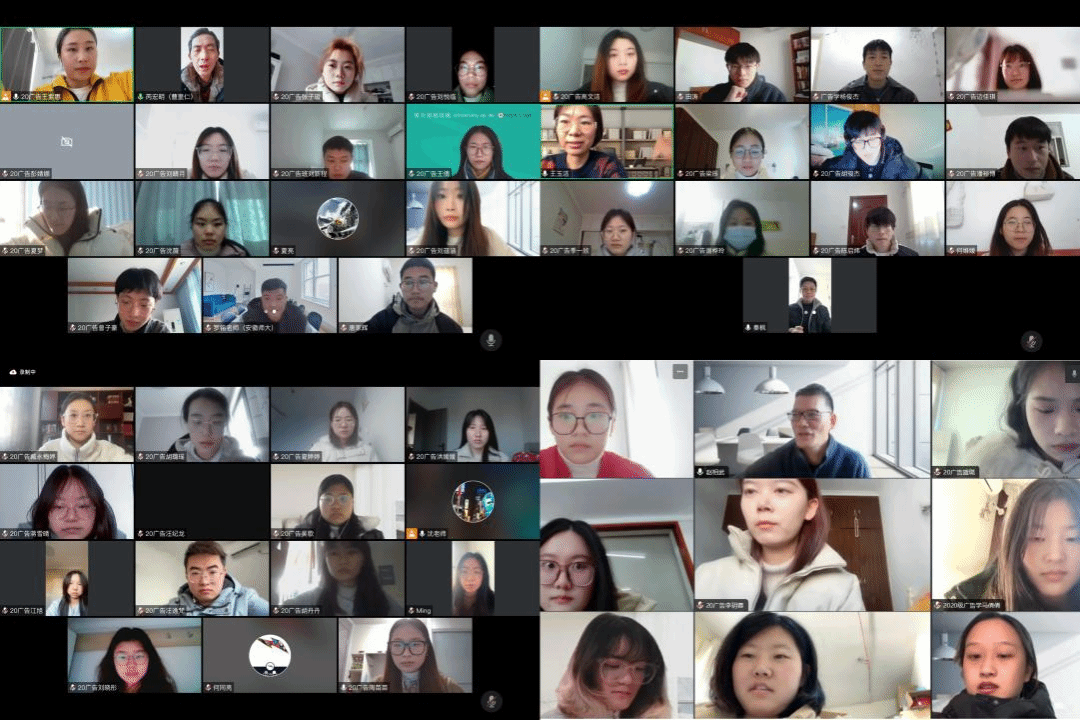 2024年1月28日下午,2020级广告学专业毕业论文中期汇报答辩活动在线上举行。答辩分为学生自我陈述,答辩组教师点评、提问、交流,答辩组组长总结发言等环节,论文选题涉及智能传播、科技伦理、文旅融合、媒介经营等多个领域。答辩活动分为四组同时进行,芮宏明、赵相武、王玉洁、沈幼平四位老师分别担任各答辩组组长,广告学专业全体教师、2020级广告学专业同学全体参加本次活动。