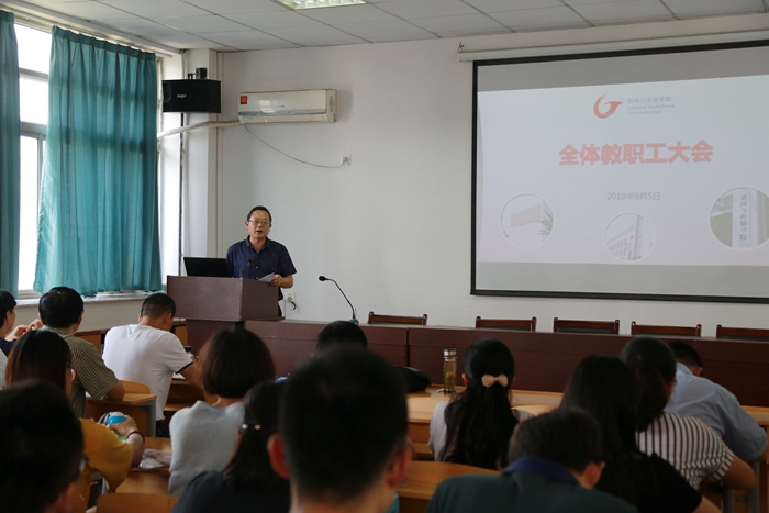 会上,学院领导分别对照各自分管工作进行了强调,明确不足,并通告下一步工作方向。院党委副书记宋静重点围绕大学生暑期社会实践工作和就业情况进行汇报,同时介绍了新学期的迎新工作。部校共建副院长沈正赋围绕省部共建工作,新闻传播学科评估论证,二级学科博士点申报等学科建设重大问题进行汇报。行政副院长周伍对教职工体检、公司创收运营等做了详尽介绍。教学副院长马梅对学校本科教学竞赛、教育部专业认证、新的人才培养方案等进行讲解介绍。科研副院长周赵昊对国家社科项目的突破等科研项目指标的丰硕成果进行汇报,并对申报注意事项、时间节点等进行提醒。