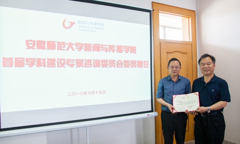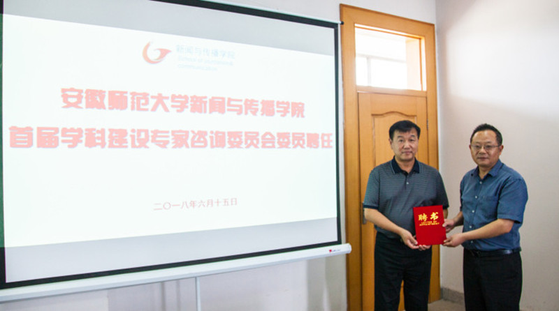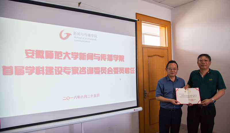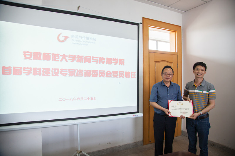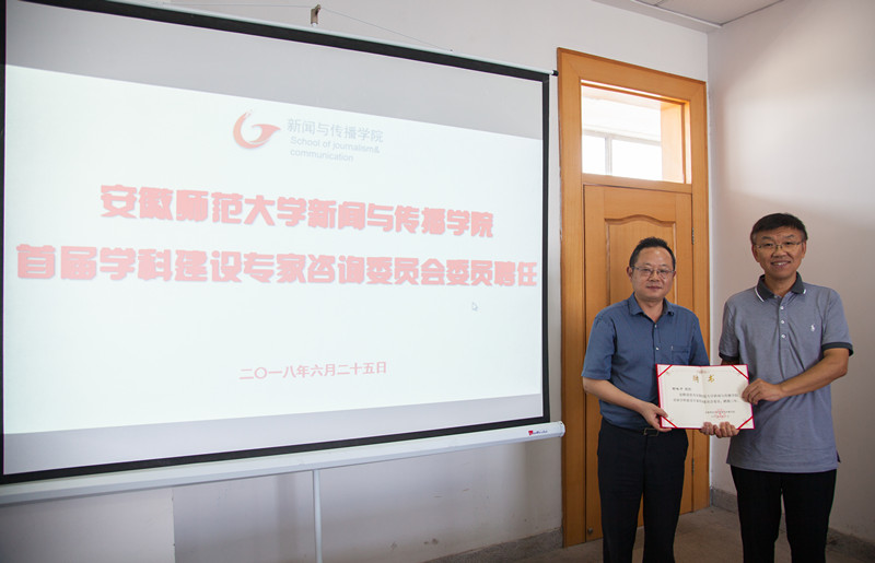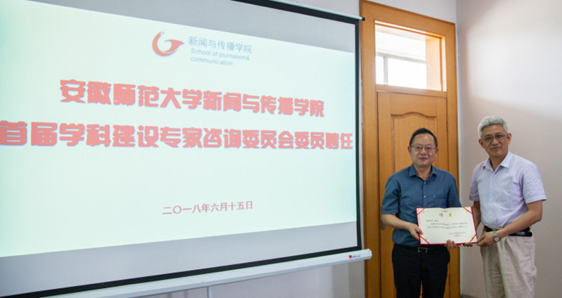6月25日,学院聘请了国务院学位委员会新闻传播学学科评议组成员、华中科大新闻与信息传播学院原院长、博士生导师张昆教授、南京大学新闻传播学院博士生导师丁柏铨教授、华中科大新闻与信息传播学院品牌传播研究中心主任、博士生导师舒咏平教授、南京师范大学德赢AC米兰合作伙伴执行院长、博士生导师张晓峰教授、安徽大学新闻传播学院博士生导师王天根教授为新闻传播学学科建设专家咨询委员会委员。