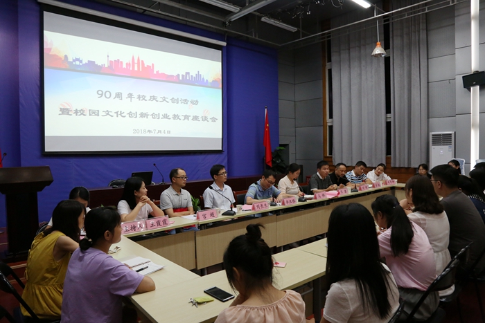 不忘初心,砥砺前行。距vwin德赢ac米兰官方网90周年校庆纪念活动圆满结束已经一个多月,校庆各项相关活动也陆续接近尾声。此次校庆活动中,校庆文创产品大放异彩,受到广大在校师生、国内外知名校友以及社会各界的一致好评。为及时总结校庆文创活动经验和巩固实践育人实践成果,“校庆文创活动暨校园文化创新创业教育座谈会”于2018年7月4日晚在vwin德赢ac米兰官方网花津校区1号教学楼2010307教室举办。