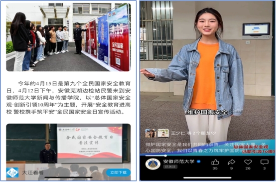 为推动国家安全教育与专业实践相结合,全民国家安全教育日活动期间,学院还积极组织师生对接芜湖市国家安全局,前往芜湖古城、滨江公园等地承担芜湖市国家安全局系列宣传活动的拍摄任务,师生们以高度负责的态度、训练有素的技能,赢得了一致好评。除此之外,2023级播音学子还利用专业优势,拍摄国家安全教育宣传短片。